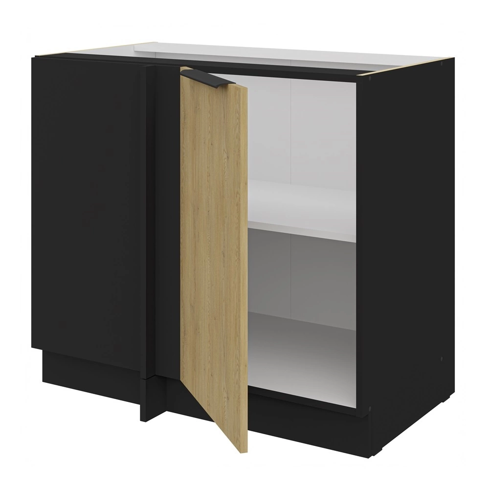 Die Eckküchenzeile Crotone in Schwarz / Eiche Cremona gehört zur Kategorie der modularen Küchenmöbel, aus denen sich jedes gewünschte Set zusammenstellen lässt.