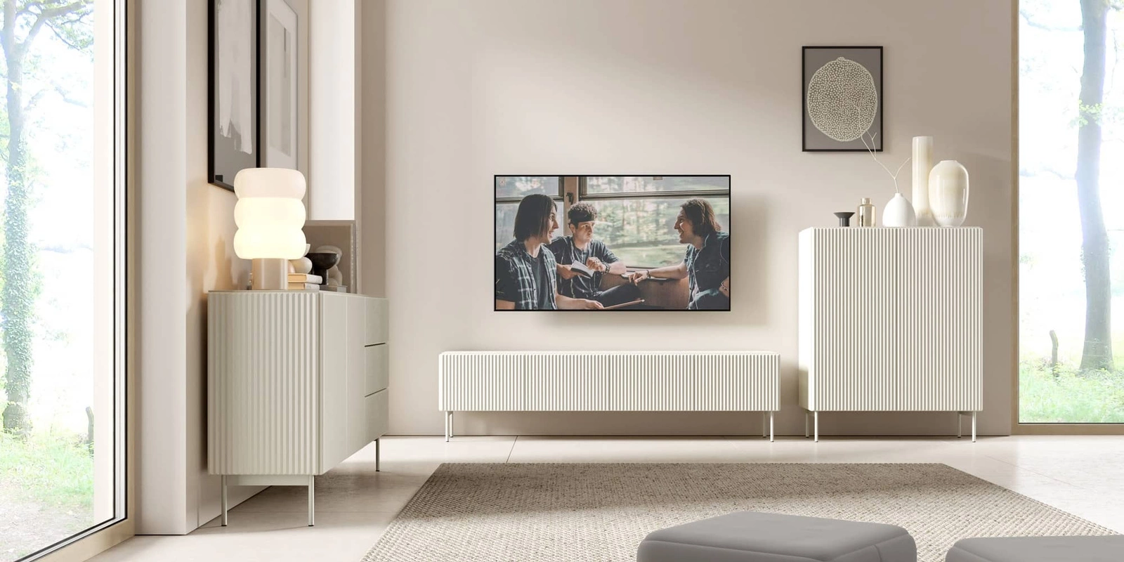 Der Muti RTV-Schrank ist eine Kombination aus Funktionalität und außergewöhnlichem Design.