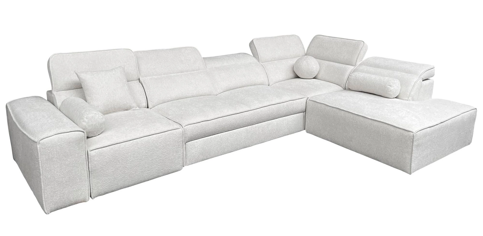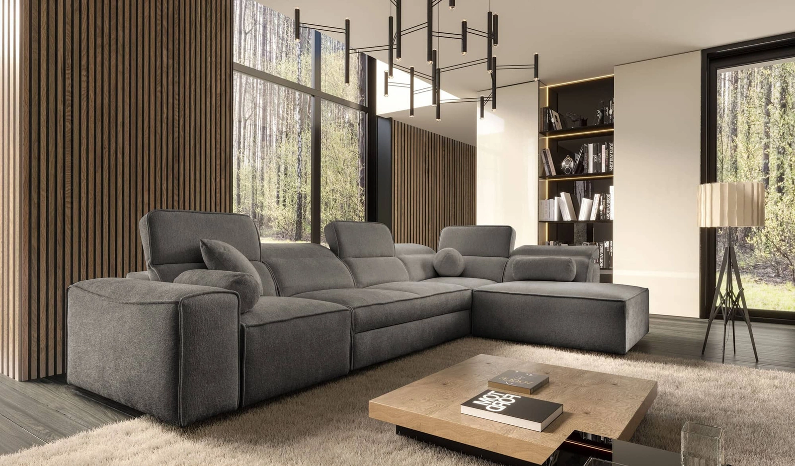 Ecksofa mit Schlaffunktion Viano XI grau rechte Seite modisches und stilvolles Ecksofa mit verstellbaren Kopfstützen Zierkissen