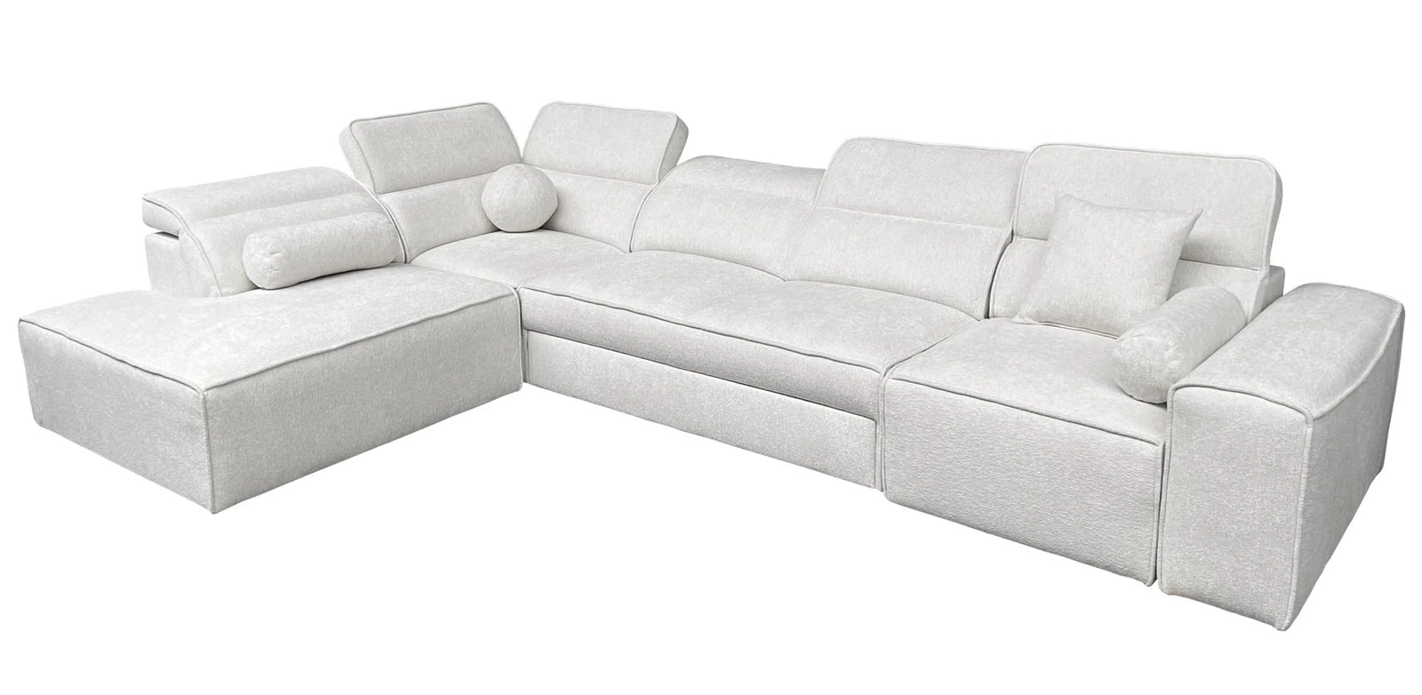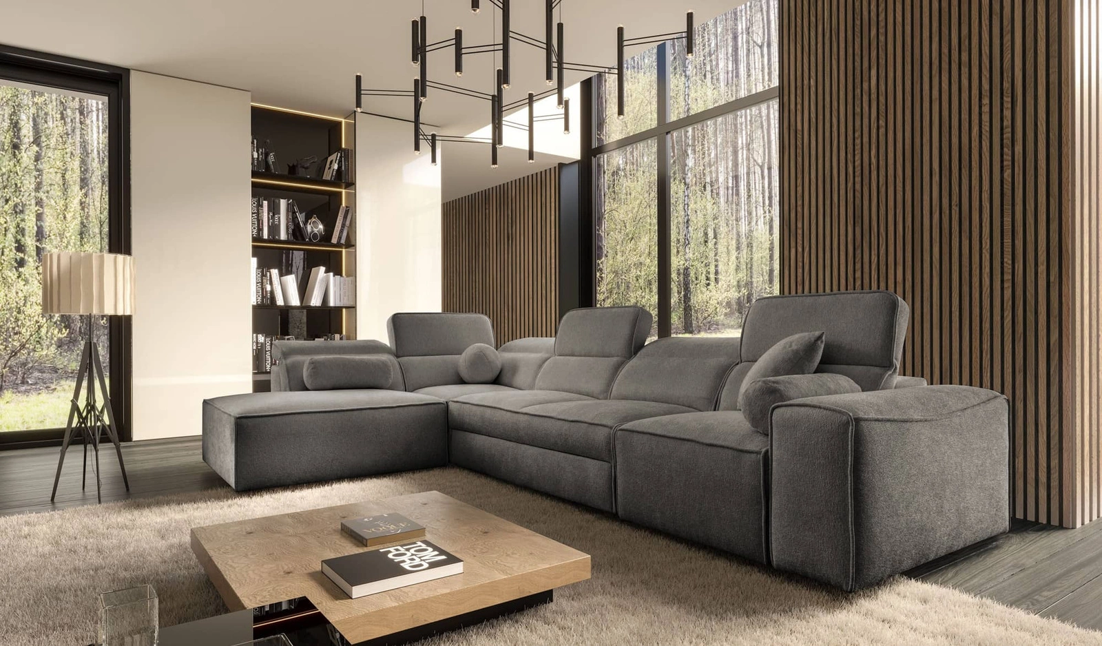 Ecksofa mit Schlaffunktion Viano XI grau linksdrehend modisches und stilvolles Ecksofa mit verstellbaren Kopfstützen Zierkissen
