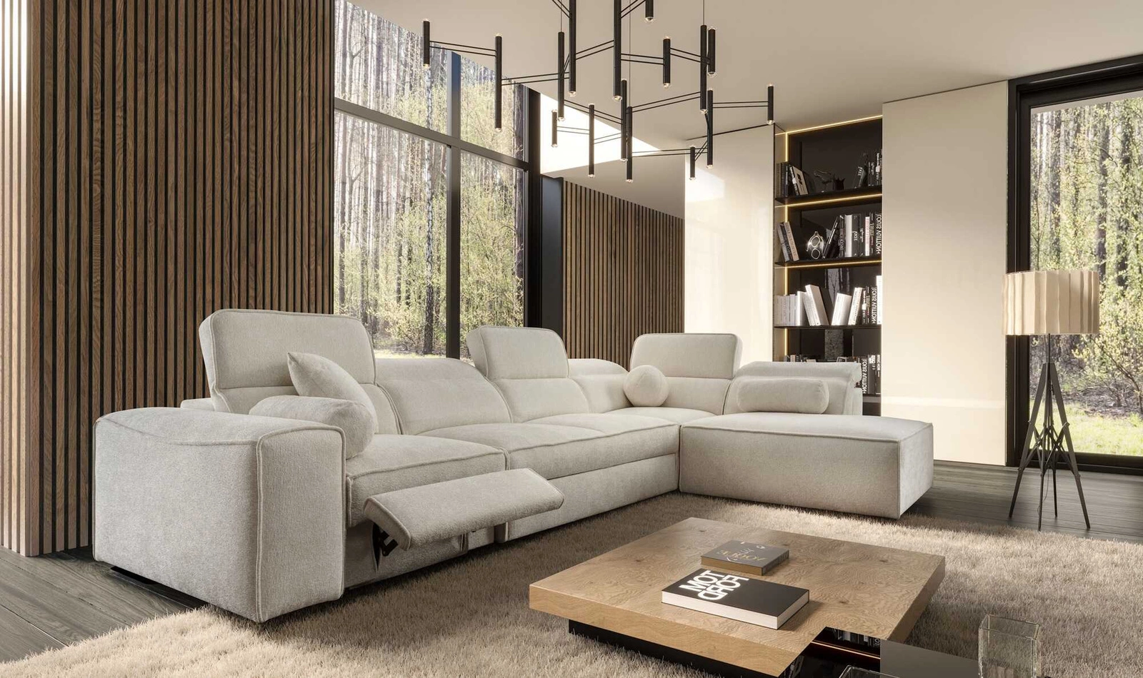 - Das Ecksofa Viano XI Lux zeichnet sich durch seine außergewöhnliche Vielseitigkeit aus. Die Verwendung eines luxuriös strukturierten und ästhetisch ansprechenden Stoffes verleiht ihm eine exklusive Note. Die zusätzliche ausziehbare Fußstütze sorgt für ein