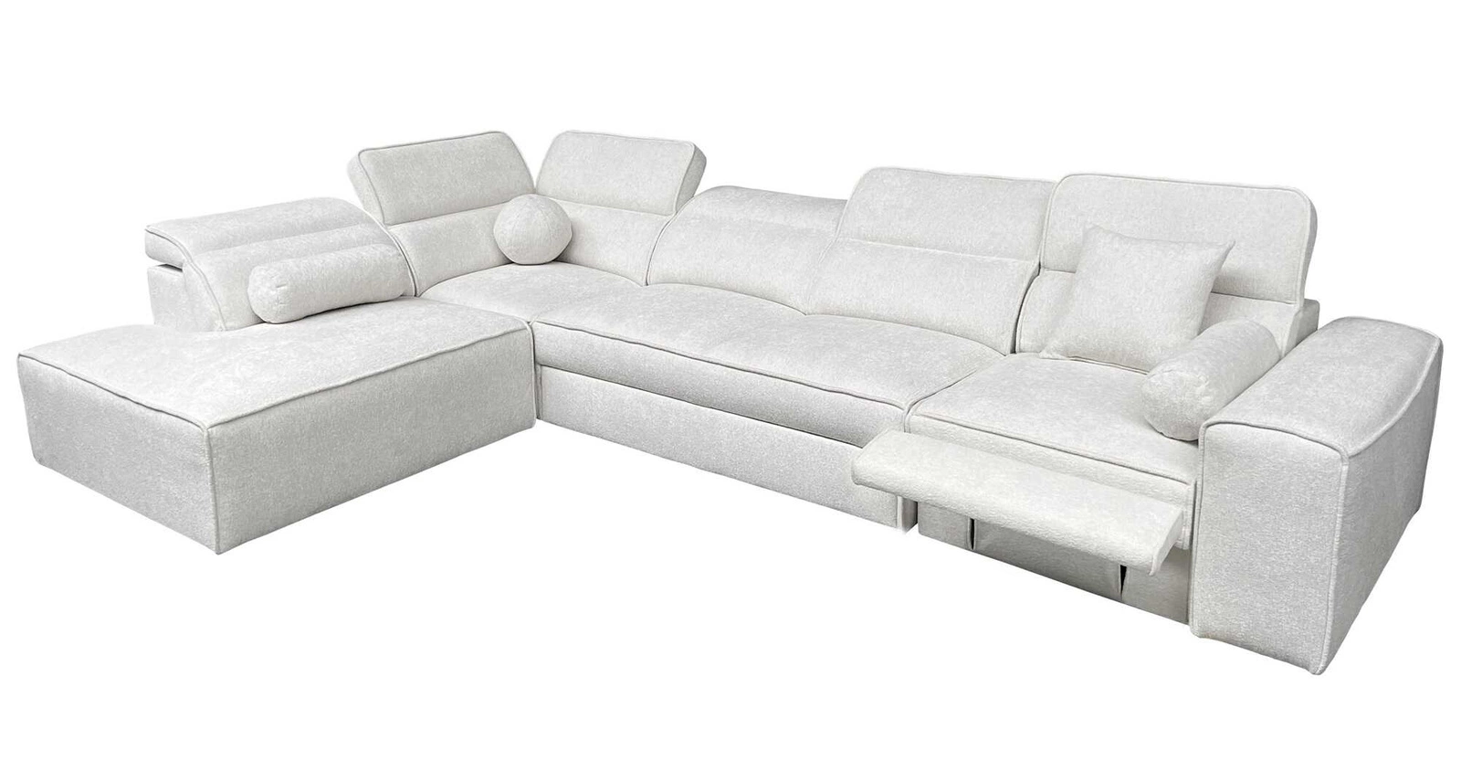 - Das Ecksofa Viano XI Lux zeichnet sich durch seine außergewöhnliche Vielseitigkeit aus. Die Verwendung eines luxuriös strukturierten und ästhetisch ansprechenden Stoffes verleiht ihm eine exklusive Note. Die zusätzliche ausziehbare Fußstütze sorgt für ein