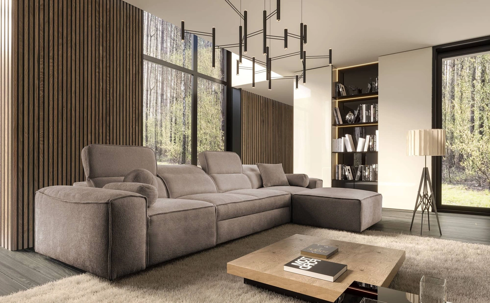 - Das Ecksofa Viano XII zeichnet sich durch seine außergewöhnliche Vielseitigkeit aus, dank derer es sich perfekt in viele Inneneinrichtungen einfügen lässt. Die Verwendung von hochwertigem Stoff mit luxuriöser Textur und ästhetischem Design verleiht der Ec