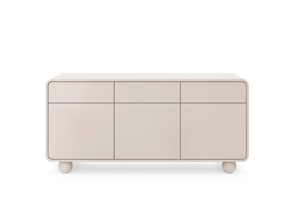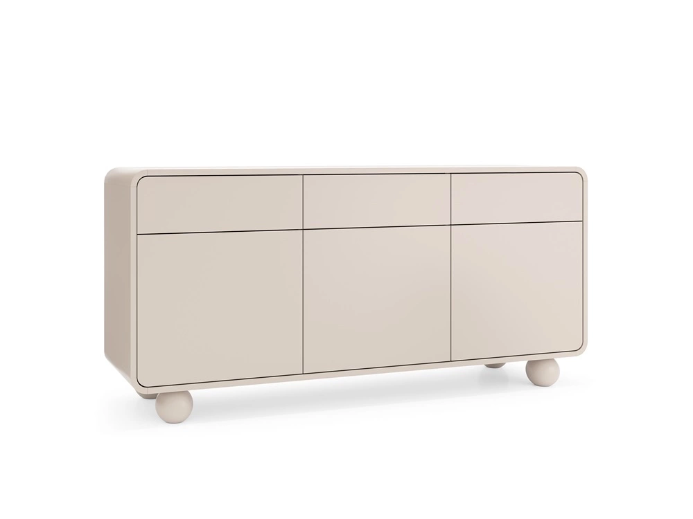 Kommode mit Schubladen Bion 160 cm beige stylische Kommode für Wohnzimmer Designer runde Form originelle Beine in Form von Kugeln