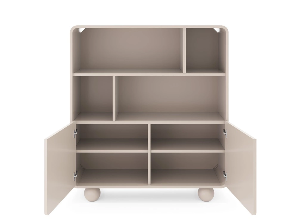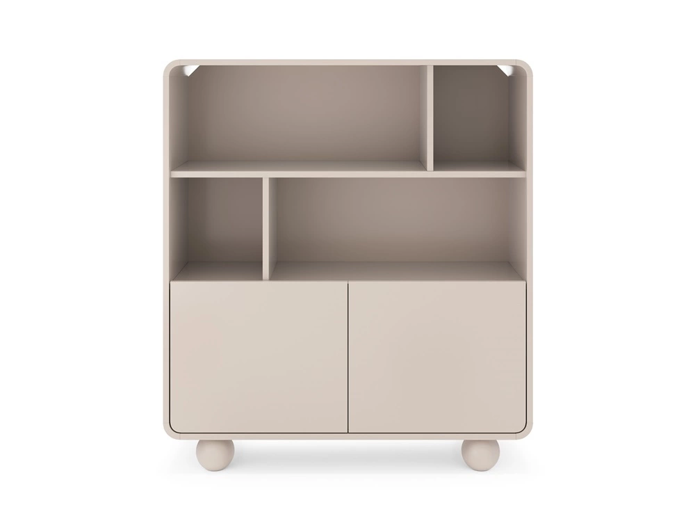 Bücherregal Bion 108 cm beige modernes Design gedeckte Farben Designer runde Form stilvolle kugelförmige Beine