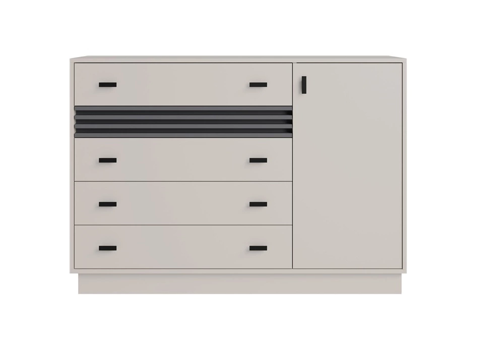 Das Estan-Möbelset ist die ideale Wahl für Liebhaber moderner Einrichtungen mit elegantem Charakter, für die eine breite Palette von funktionalität möbel. Fronten in beige mit einem Kaschmir-Ton werden durch anthrazitfarbene Einlagen aufgelockert anthrazit. Eine stilvolle Ergänzung zu den Fronten sind metallgriffe in Schwarz, die zusätzlich zu ihrer Hauptfunktion den Möbeln einen einzigartigen Stil verleihen. Schubladen in Bücherregalen, Kommoden und RTV-Schrankauszügen auf kugelgelagerten Schienen.