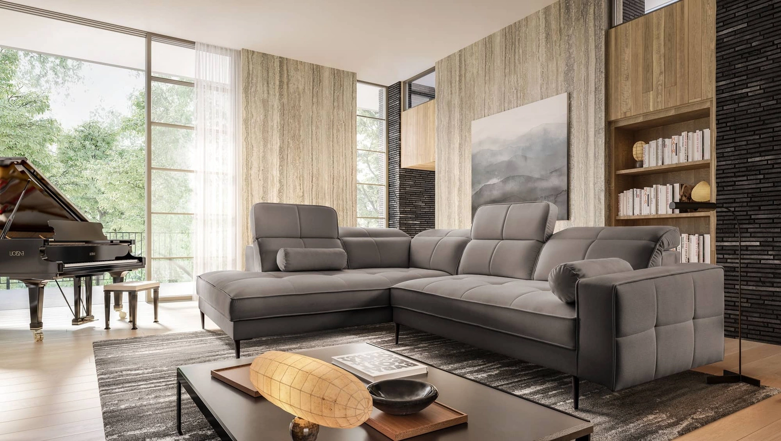 Ecksofa Samos grau links modernes Design einfach und stilvoll Körper in jedes Interieur Design passen verstellbare Kopfstützen