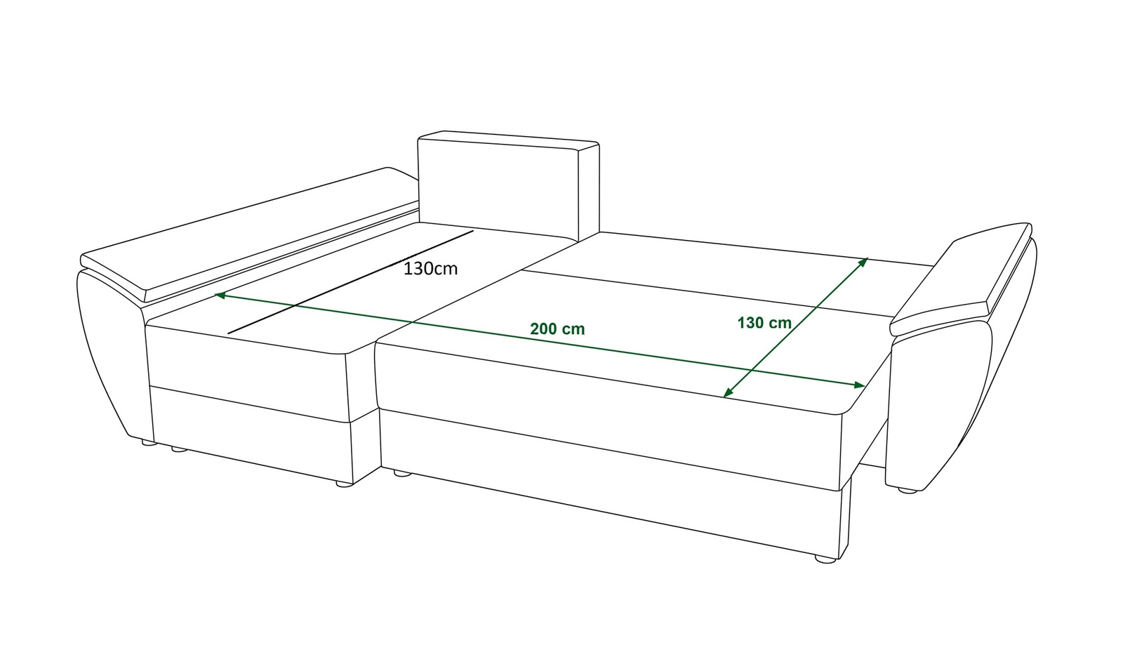 Abmessungen des Ecksofas mit Schlaffunktion:
