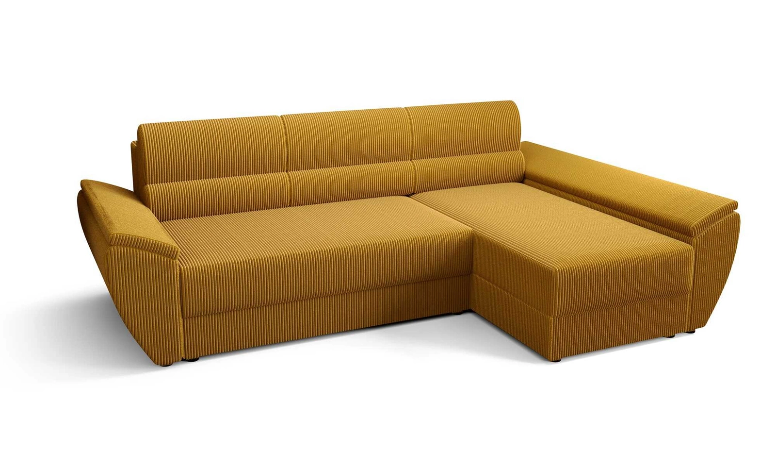 Ecksofa mit Schlaffunktion Fogu III Honig-Gelb rechts stilvolles Ecksofa mit Armlehnen und Bettzeugablage Kordstoff