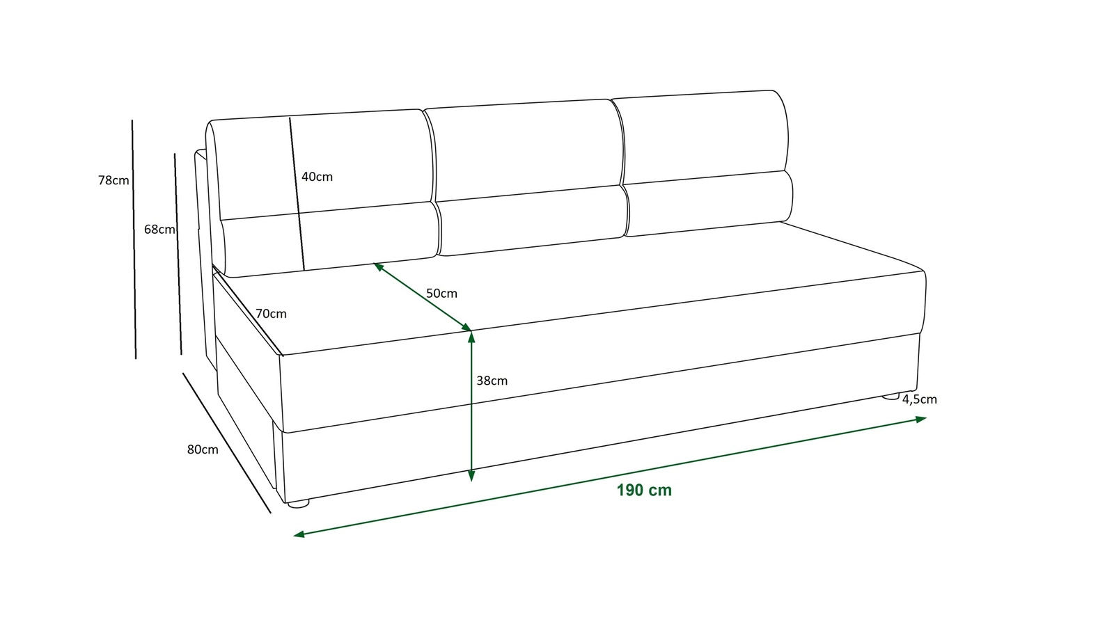 Das Aufklappen der kompletten Liegefläche ist sehr einfach und erfordert wenig Kraftaufwand. Der Sitz ist auf Holzkufen ausziehbar. Die Liegefläche des Sofas beträgt 130x190 cm. Die Möbel sind mit niedrigen Kunststoffbeinen ausgestattet. Garantiert eine komfortable und störungsfreie Nutzung und eine lange Lebensdauer des gesamten Möbelstücks. Ideal als Sofa für das Wohnzimmer, als Sofa mit Schlaffunktion und für jede Einrichtung in Ihrem Lieblingsstil.