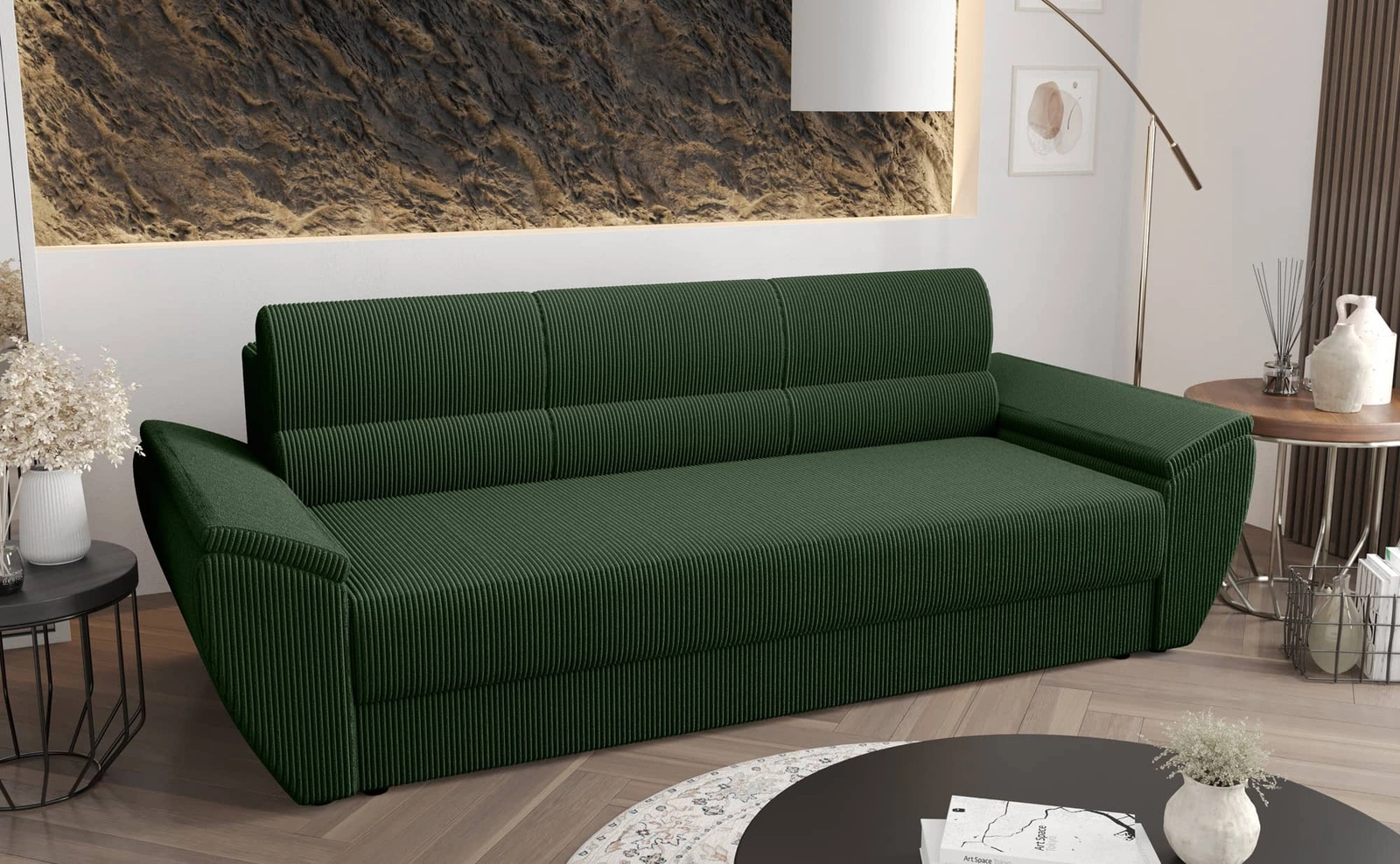 Sofa Fogu Bis grün stilvolles Sofa mit bequemen Armlehnen Cord-Polsterung Stoff Bettzeug Container
