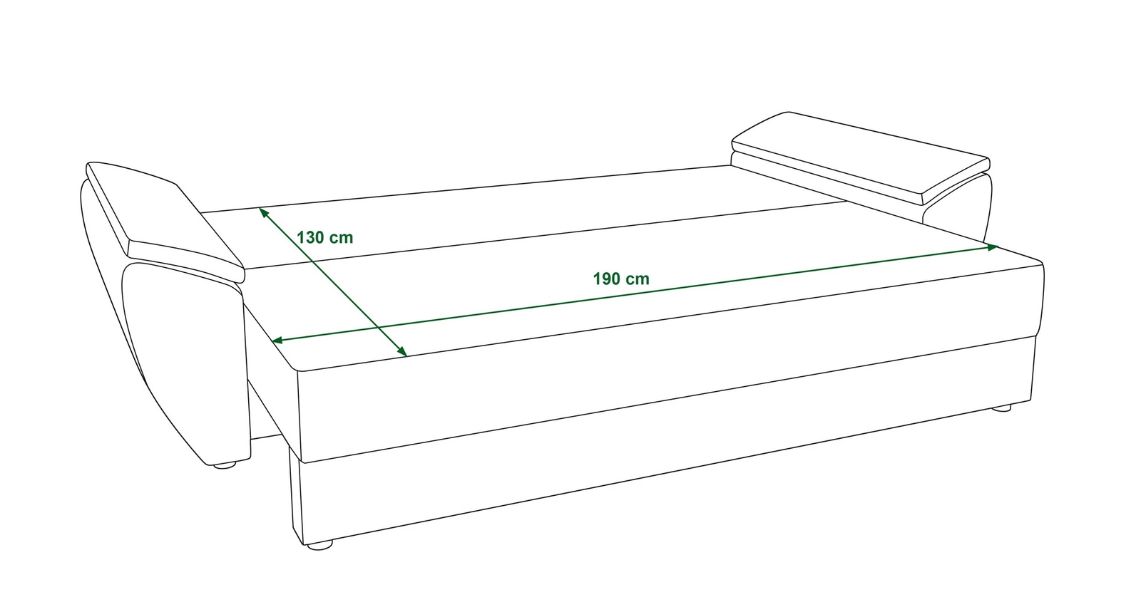 Das Aufklappen der kompletten Liegefläche ist sehr einfach und erfordert wenig Kraftaufwand. Der Sitz ist auf Holzkufen ausziehbar. Die Liegefläche des Sofas beträgt 130x190 cm. Die Möbel sind mit niedrigen Kunststoffbeinen ausgestattet. Garantiert eine komfortable und störungsfreie Nutzung und eine lange Lebensdauer des gesamten Möbelstücks. Ideal als Sofa für das Wohnzimmer, als Sofa mit Schlaffunktion und für jede Einrichtung in Ihrem Lieblingsstil.
