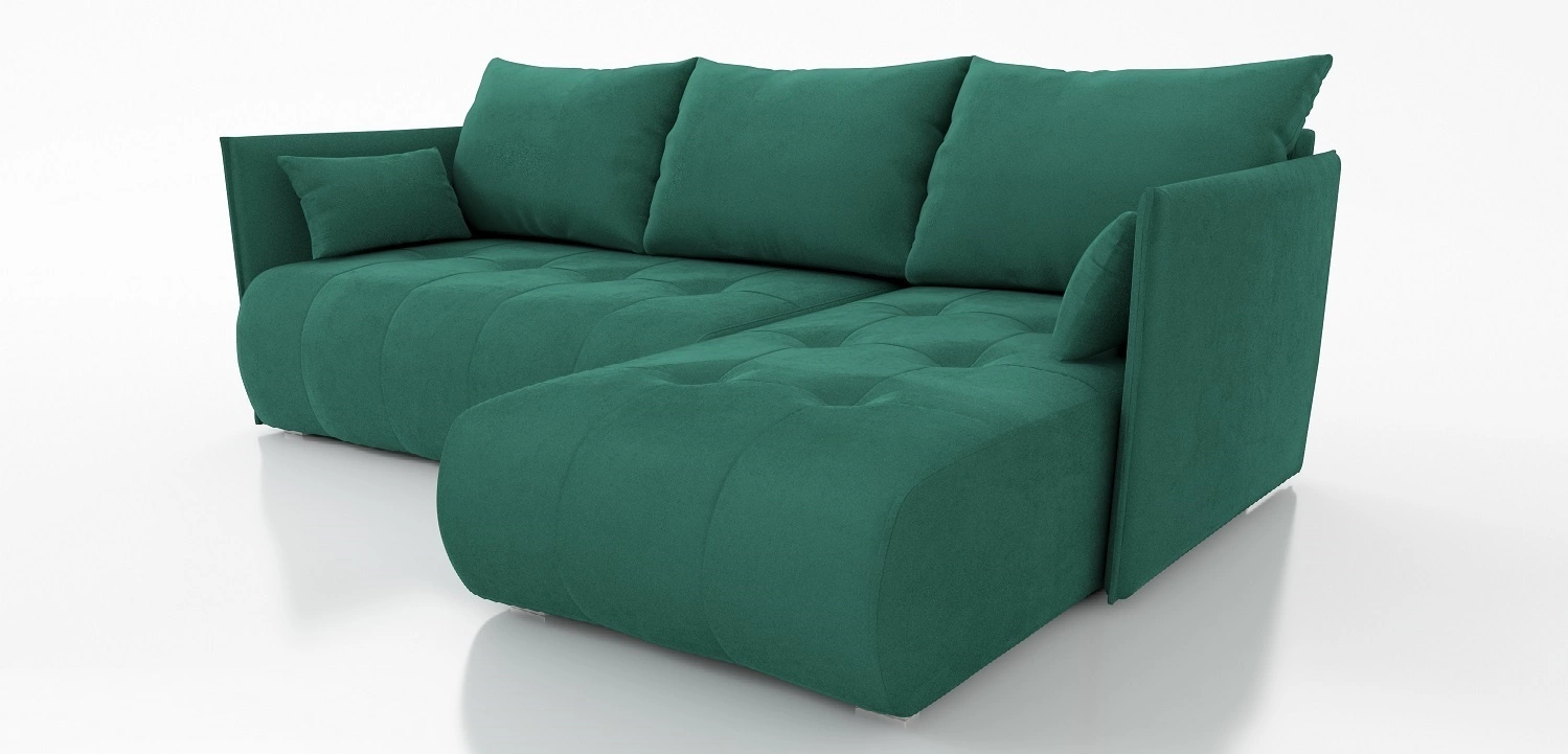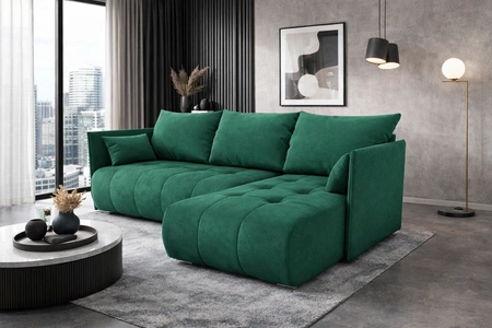 Ecksofa mit Schlaffunktion Selva Flasche grün universal seite Ecksofa mit Bettkasten bequemer Plüschstoff
