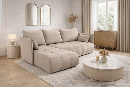 Ecksofa Selva in Hellbeige ist ein attraktives Möbelstück, das sich in jedem Raum Ihres Zuhauses gut einfügt.