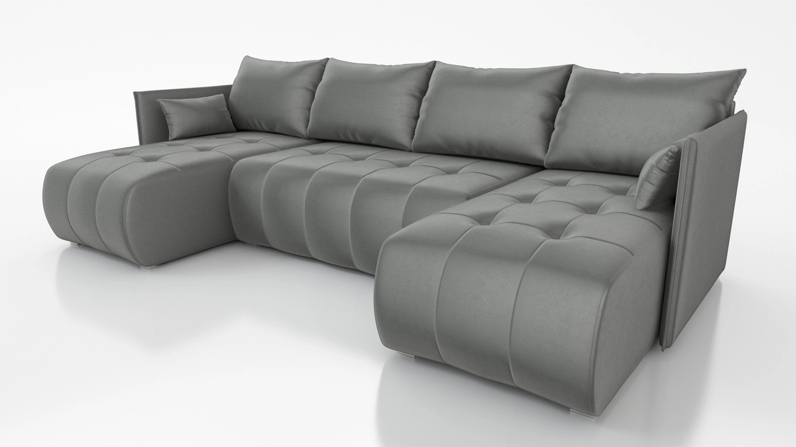 Ecksofa mit Schlaffunktion Selva U hellgrau Interessant präsentiertes Ecksofa aus weichem, samtartigem Stoff
