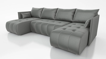Auffälliger und zugleich angenehm zu berührender Stoff mit einer interessanter Struktur gibt einen besonderen Charakter und Schönheit. Der Stoff ist sehr weich und dennoch stark und robust. Der Monolith-Bezugsstoff ist mit einer speziellen Schutzschicht versehen, die eine hydrophoben eine Beschichtung, die ein schnelles Durchsickern von Flüssigkeiten verhindert, die verhindert, dass der Stoff Flüssigkeiten sofort aufsaugt. Das Ergebnis ist, dass der klappbare Eckschrank Selva U lange Zeit ästhetisch und elegant aussehen wird. Das Ecksofa mit täglicher Schlaffunktion ist aus hochwertigen Materialien gefertigt, die gegen äußere Einflüsse wie Möbelbezüge und verschiedene Arten von Stößen resistent sind.