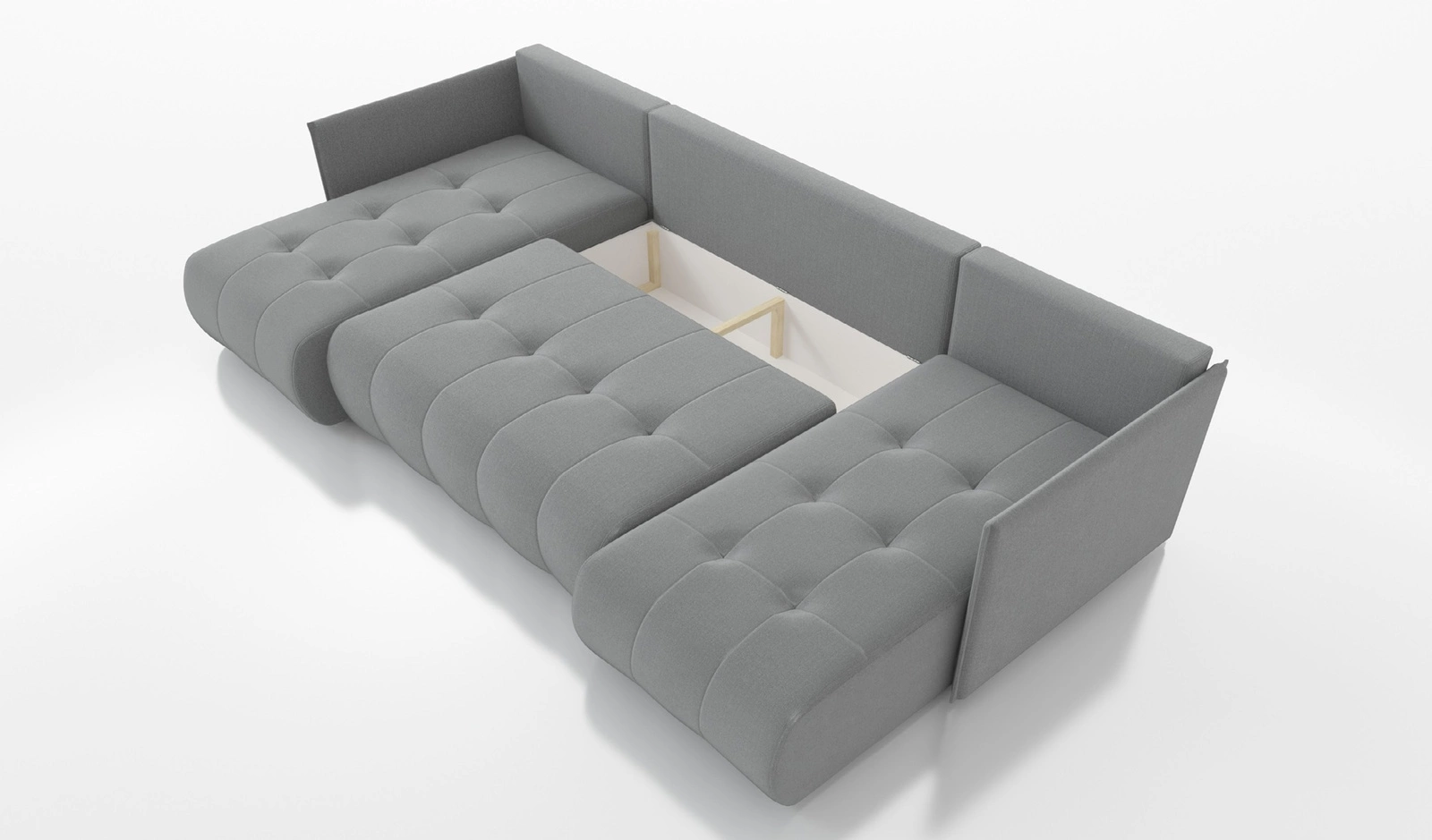 Die Art der Entfaltung der Eckeinheit ist praktisch und einfach zu bedienen automatische Maschine Typ DL, das sich durch eine lange Lebensdauer auszeichnet. Flächendeckende Verteilung schlafen ist sehr einfach und erfordert keinen großen Kraftaufwand. Die Möbel sind ausgestattet mit mit niedrigen Kunststofffüßen. Die Wohnzimmerecken aus der Selva-Kollektion fügen sich perfekt in jede Einrichtung in Ihrem Lieblingsstil ein.