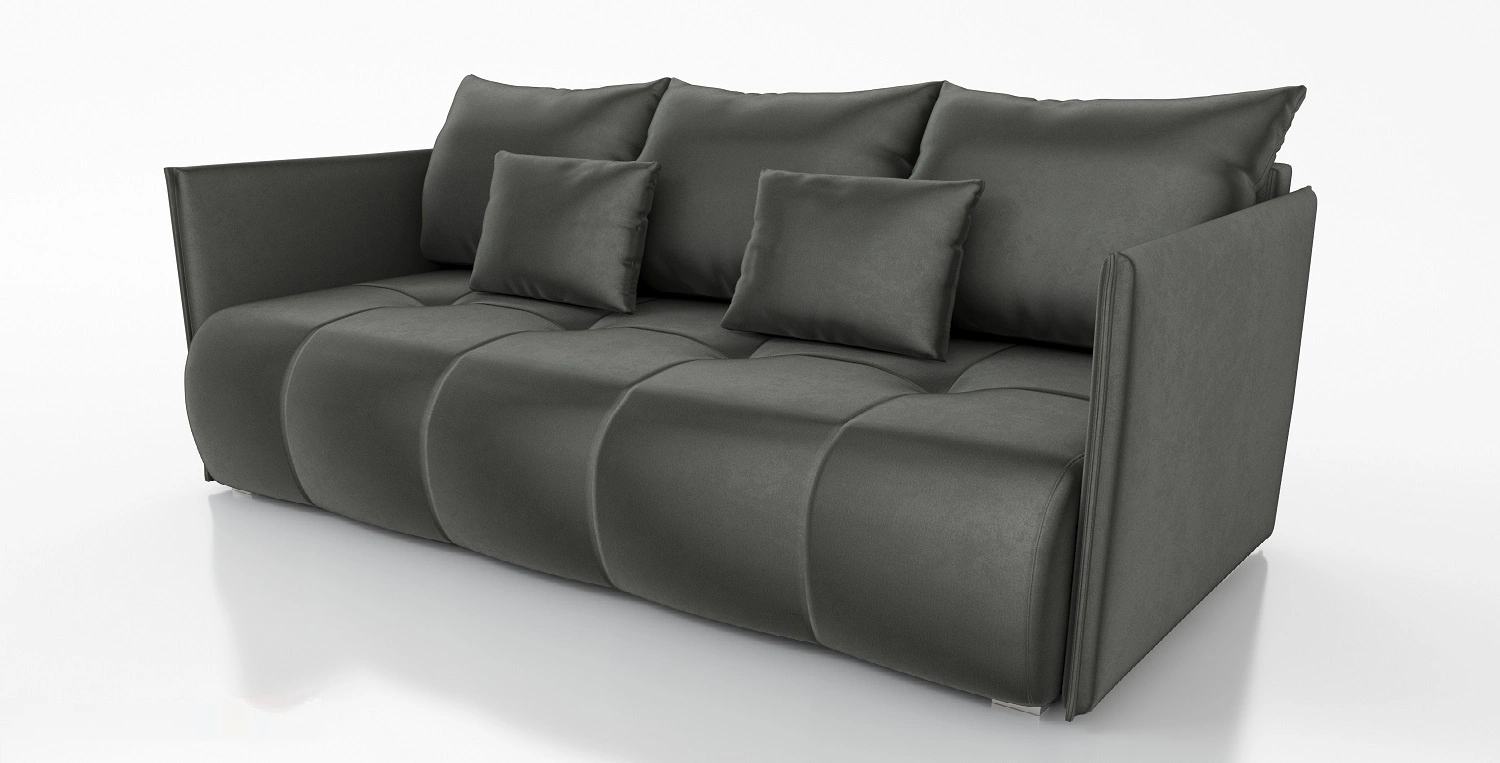 Sofas mit Schlaffunktion aus der Kollektion Selva ist ein Möbel mit klassischer Struktur in modernem Design, das sich perfekt in jede Einrichtung einfügt. Das Sofa ist vollständig mit Stoff aus dem samt Monolith 92. Sofa zeichnet sich aus durch hohe Verarbeitungsqualität, modernes Design mit Ziernähten unterstrichen nähte und steppung die Dekoration des Sitzes des Klumpens. Geschmackvolle Rückenkissen sorgen für noch mehr Komfort und Bequemlichkeit bei diesem hochmodernen Wohnzimmersofa. Aufgrund seiner geringen Größe ist das Schlafsofa für kleinere Wohnungen geeignet, in denen Platzersparnis an erster Stelle steht.