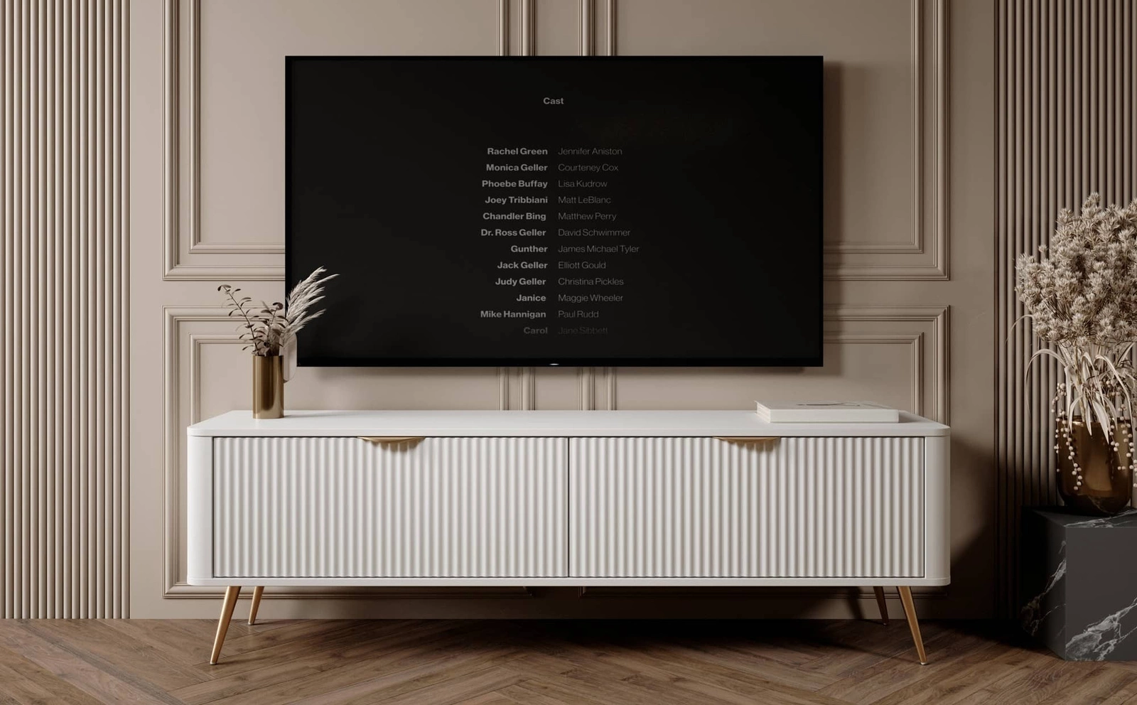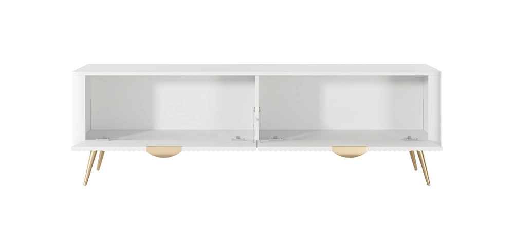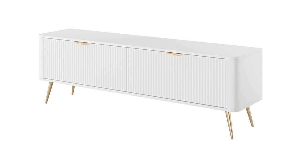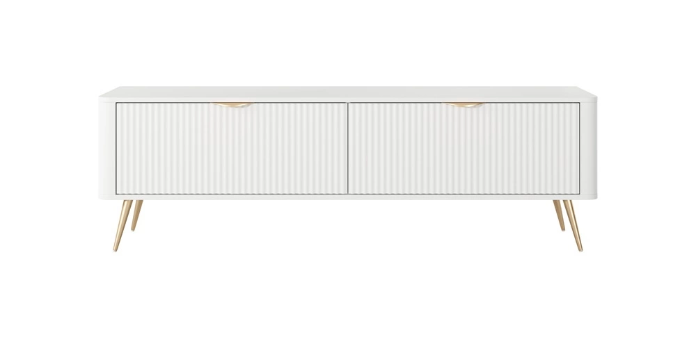 RTV-Schrank Lante 163 cm weißer Designer-TV-Schrank im trendigen Stil abgerundete Kanten der massiven geschmackvollen geriffelten Front