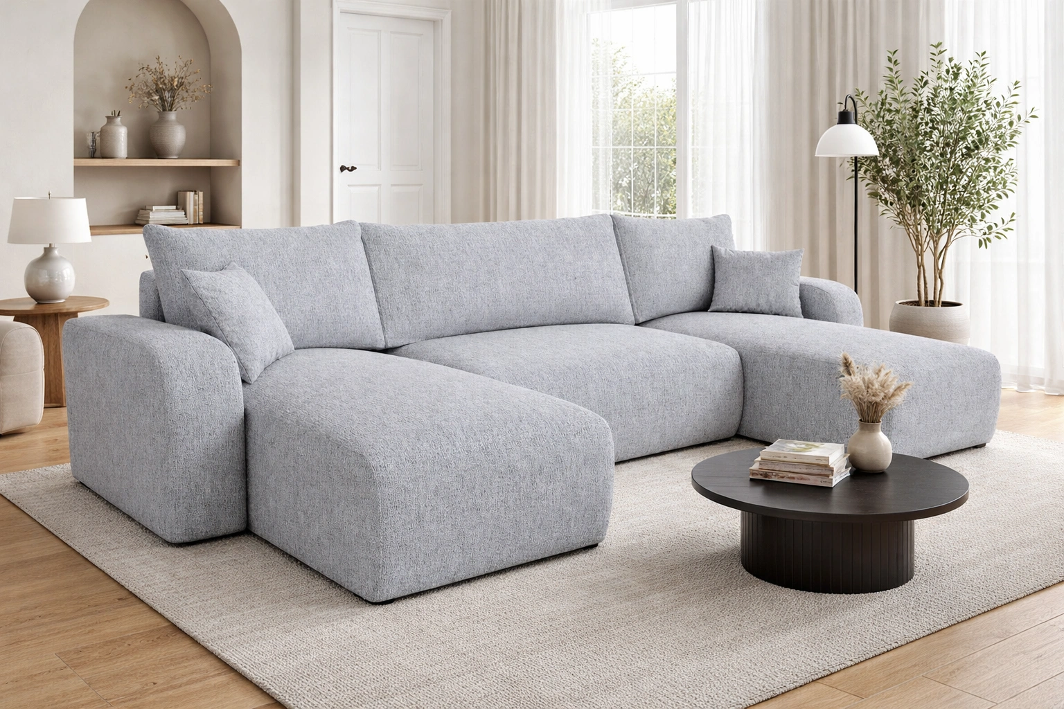 Das Neve-Gewebe zeichnet sich aus durch hohe Widerstandsfähigkeit gegen Ausbleichen, die ideal für sehr sonnige Inneneinrichtungen ist. Das gewebte Material ist robust und langlebig, fühlt sich aber sehr angenehm an und ist zudem leicht sauber zu halten. Klassisch geflochtene Struktur kombiniert mit einem Melange-Effekt verleiht Möbeln eine einzigartige Tiefe und Eleganz. Ein weiterer Vorteil des Neve-Gewebes ist seine hohe Abriebfestigkeit. So wird die Fiesta U Klappecke lange Zeit ästhetisch und elegant aussehen. Das Ecksofa mit täglicher Schlaffunktion ist aus hochwertigen Materialien gefertigt, die gegen äußere Einflüsse wie Möbelbezüge und verschiedene Arten von Stößen resistent sind.