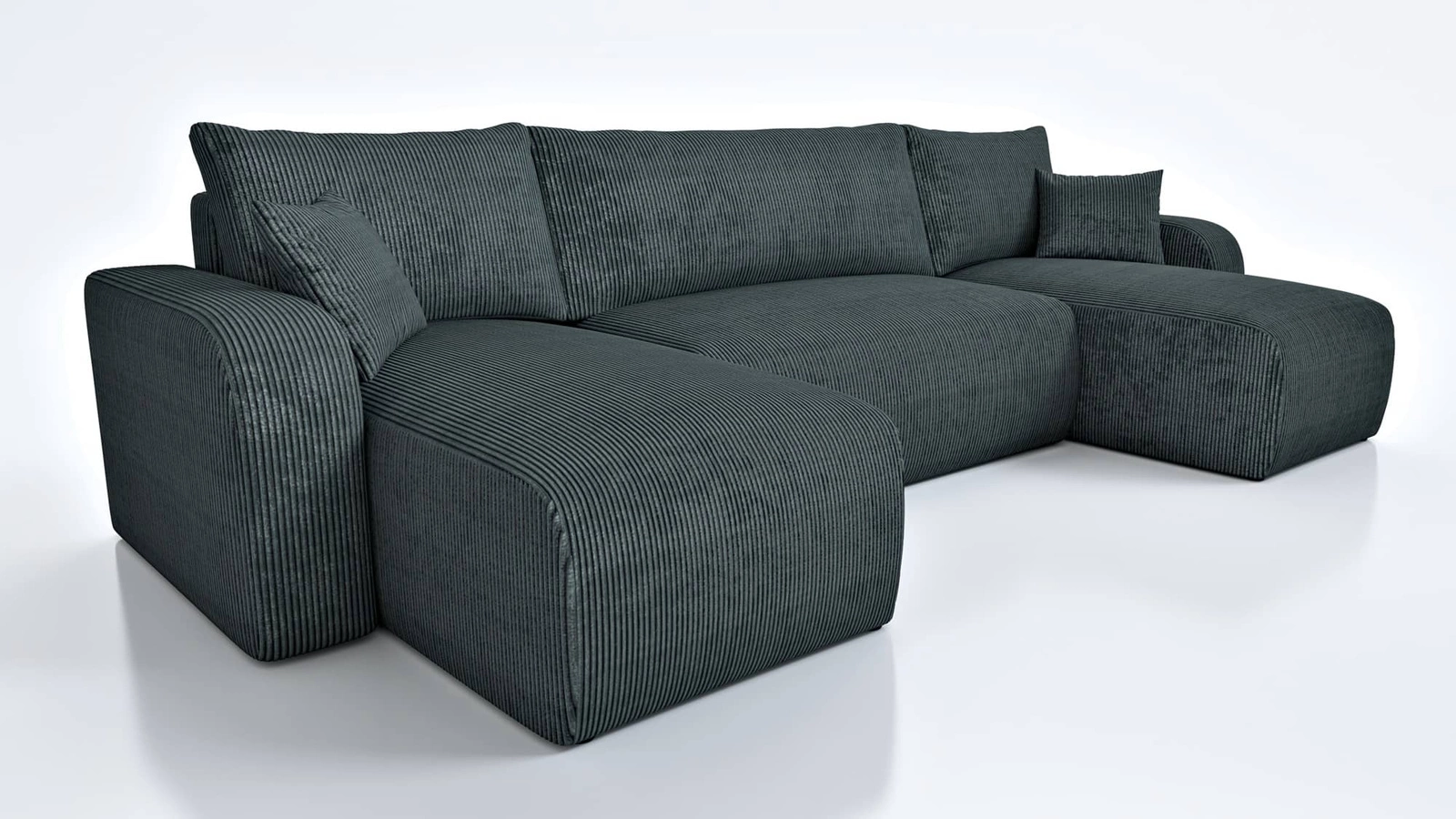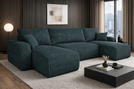 - Das Ecksofa Fiesta U zeichnet sich durch seine hohe Eleganz und seinen Komfort aus. Die Kombination aus minimalistischem Design und abgerundeten Formen sorgt für einen unkonventionellen Look. Weicher Kordstoff mit ausdrucksstarken Streifen und einem einfa