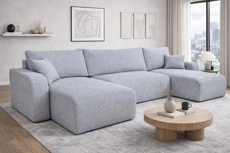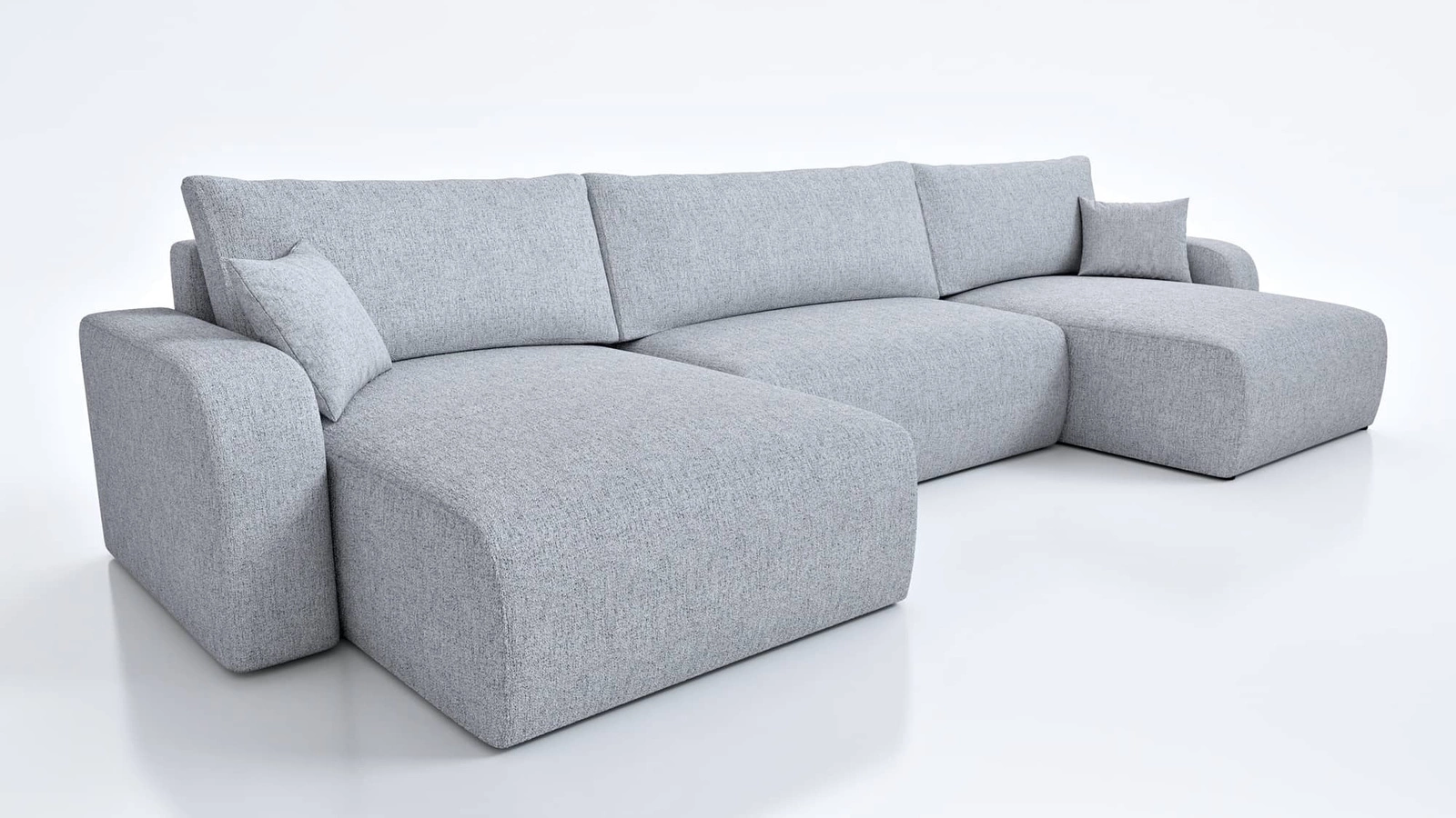 Das Neve-Gewebe zeichnet sich aus durch hohe Widerstandsfähigkeit gegen Ausbleichen, die ideal für sehr sonnige Inneneinrichtungen ist. Das gewebte Material ist robust und langlebig, fühlt sich aber sehr angenehm an und ist zudem leicht sauber zu halten. Klassisch geflochtene Struktur kombiniert mit einem Melange-Effekt verleiht Möbeln eine einzigartige Tiefe und Eleganz. Ein weiterer Vorteil des Neve-Gewebes ist seine hohe Abriebfestigkeit. So wird die Fiesta U XL-Liegeecke lange Zeit ästhetisch und elegant aussehen. Das Ecksofa mit täglicher Schlaffunktion ist aus hochwertigen Materialien gefertigt, die gegen äußere Einflüsse wie Möbelbezüge und verschiedene Arten von Stößen resistent sind.
