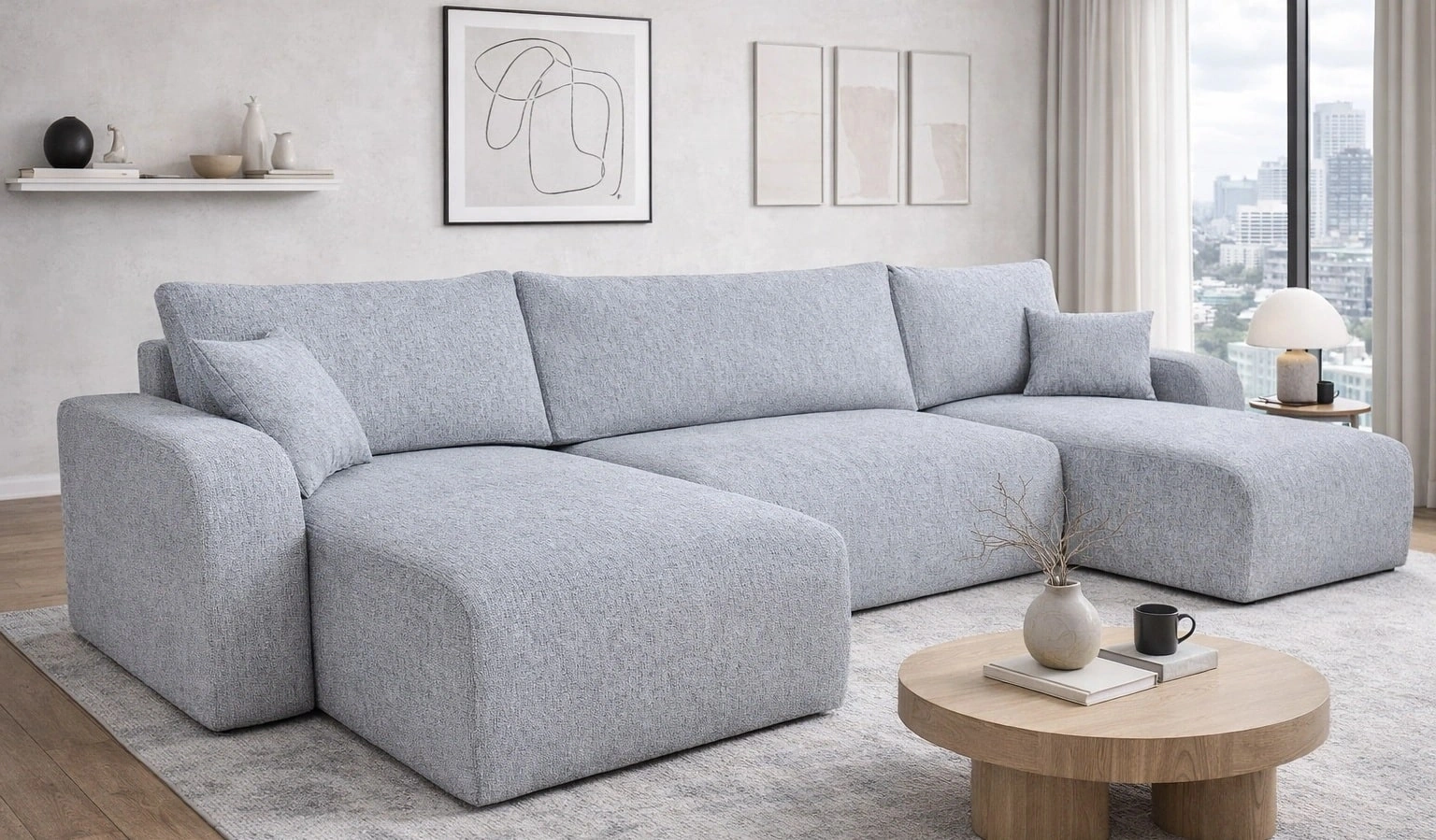 Ecksofa Fiesta U XL in grauer Esche ist ein attraktives Möbelstück, das in jedem Raum Ihres Zuhauses seinen Platz finden wird.