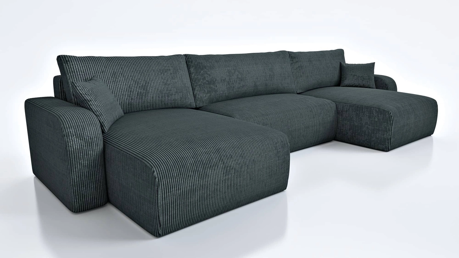 - Das Ecksofa Fiesta U XL zeichnet sich durch seine hohe Eleganz und seinen Komfort aus. Die Kombination aus minimalistischem Design und abgerundeten Formen sorgt für einen unkonventionellen Look. Weicher Kordstoff mit ausdrucksstarken Streifen und einem ei
