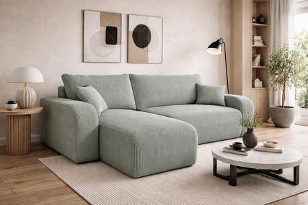 Dreidimensional kordstoff mit seiner ausgeprägten und dicken Rippung verleiht ihm einen besonderen Charakter und einzigartige Schönheit. Der Stoff ist sehr weich und dennoch stark und robust. Der Poso-Polsterungsstoff ist widerstandsfähig gegen Abrieb, und leicht sauber zu halten. Dank dessen wird die Fiesta-Klappecke lange Zeit ästhetisch und elegant aussehen. Das Ecksofa mit täglicher Schlaffunktion ist aus hochwertigen Materialien gefertigt, die gegen äußere Einflüsse wie Möbelbezüge und verschiedene Arten von Stößen resistent sind.