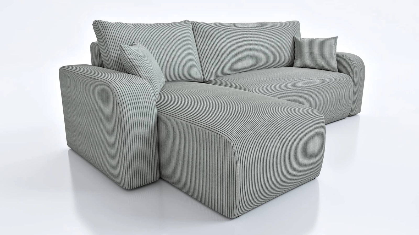 - Das Ecksofa Fiesta zeichnet sich durch seine hohe Eleganz und seinen Komfort aus. Die Kombination aus minimalistischem Design und abgerundeten Formen sorgt für einen unkonventionellen Look. Weicher Kordstoff mit ausdrucksstarken Streifen und einem einfach