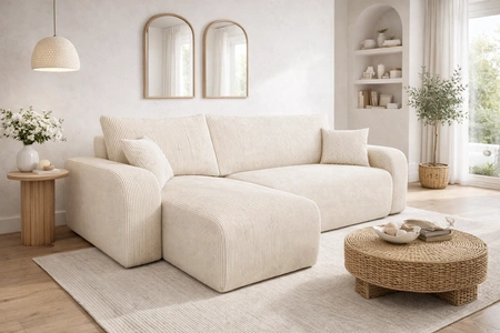 Ecksofa mit Schlaffunktion Fiesta elfenbein universal Ecksofa für Wohnzimmer Cordstoff Bettzeug-Container