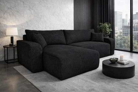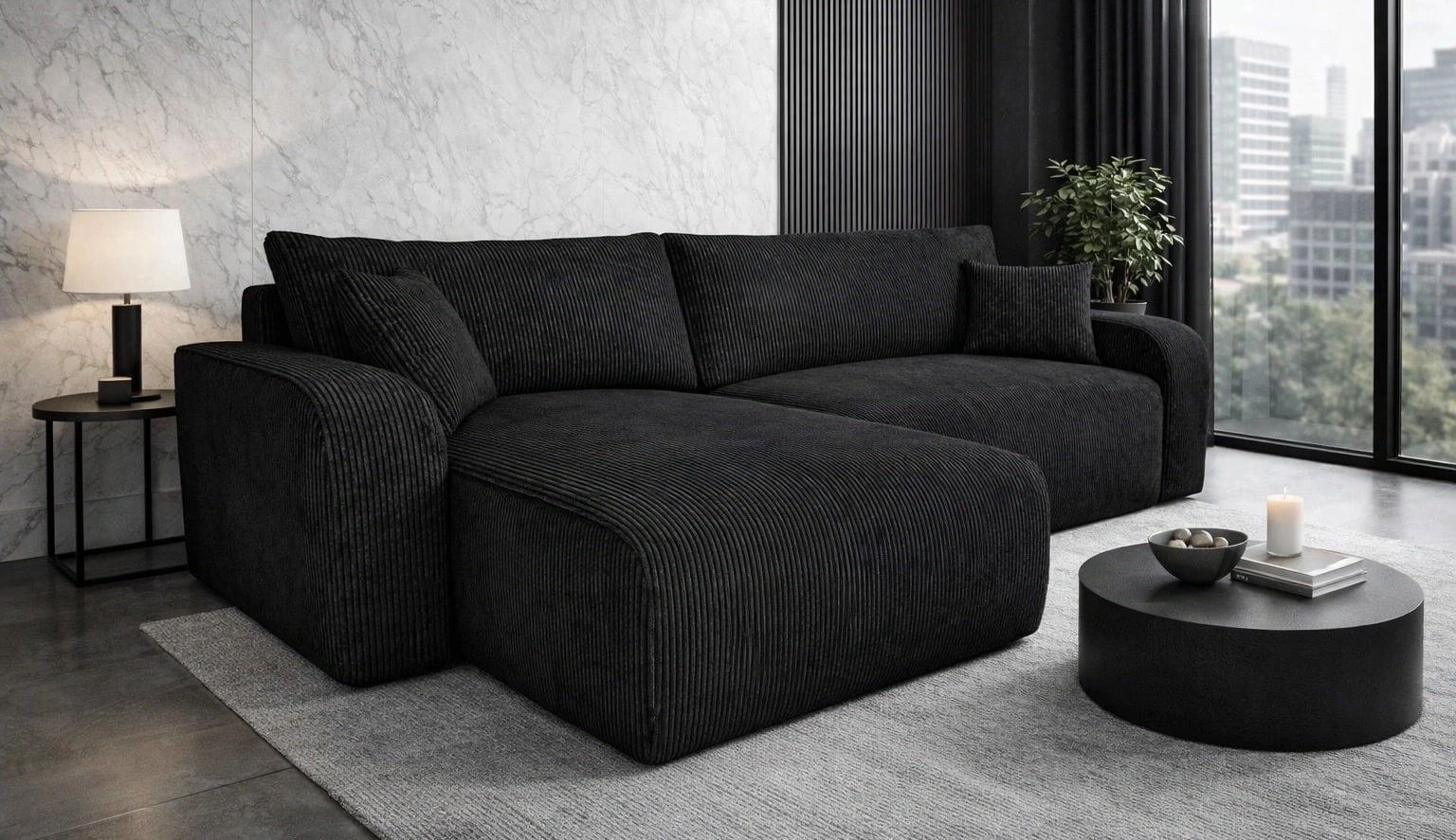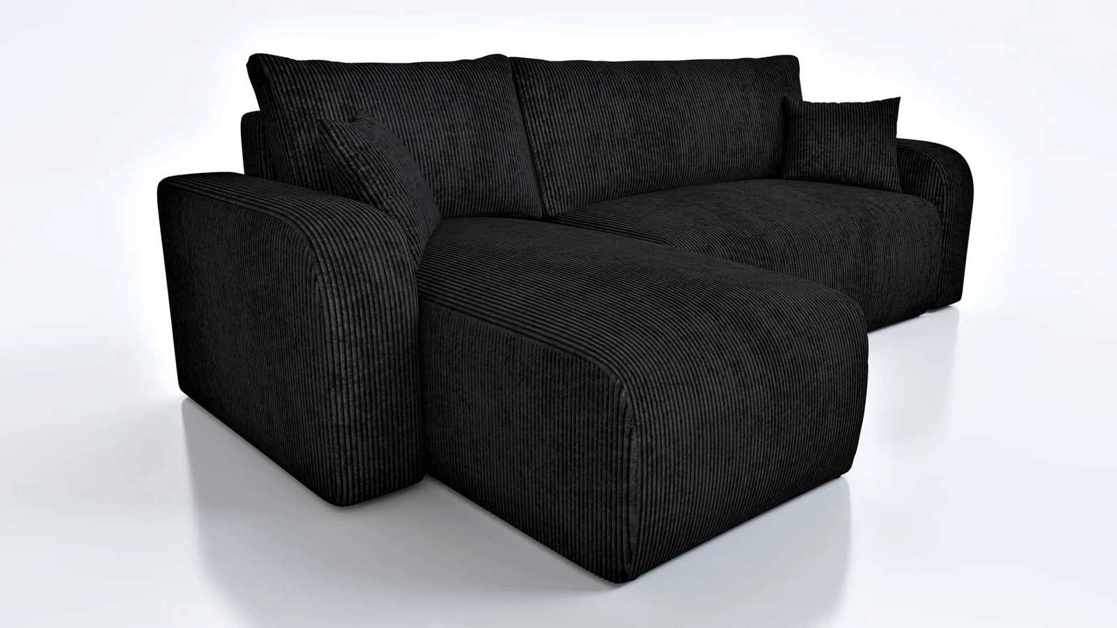 Ecksofa mit Schlaffunktion Fiesta schwarz universal Ecksofa für Wohnzimmer Kordstoff Bettzeug Container