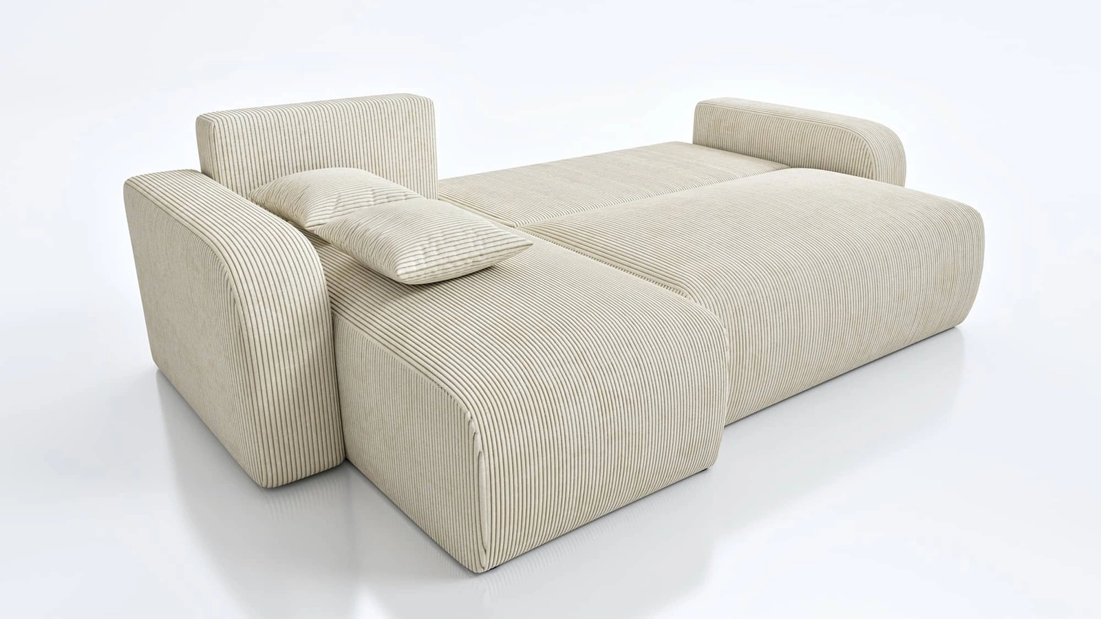 Dreidimensional kordstoff mit seiner ausgeprägten und dicken Rippung verleiht ihm einen besonderen Charakter und einzigartige Schönheit. Der Stoff ist sehr weich und dennoch stark und robust. Der Poso-Polsterungsstoff ist widerstandsfähig gegen Abrieb, und leicht sauber zu halten. Dank dessen wird die Fiesta-Klappecke lange Zeit ästhetisch und elegant aussehen. Das Ecksofa mit täglicher Schlaffunktion ist aus hochwertigen Materialien gefertigt, die gegen äußere Einflüsse wie Möbelbezüge und verschiedene Arten von Stößen resistent sind.