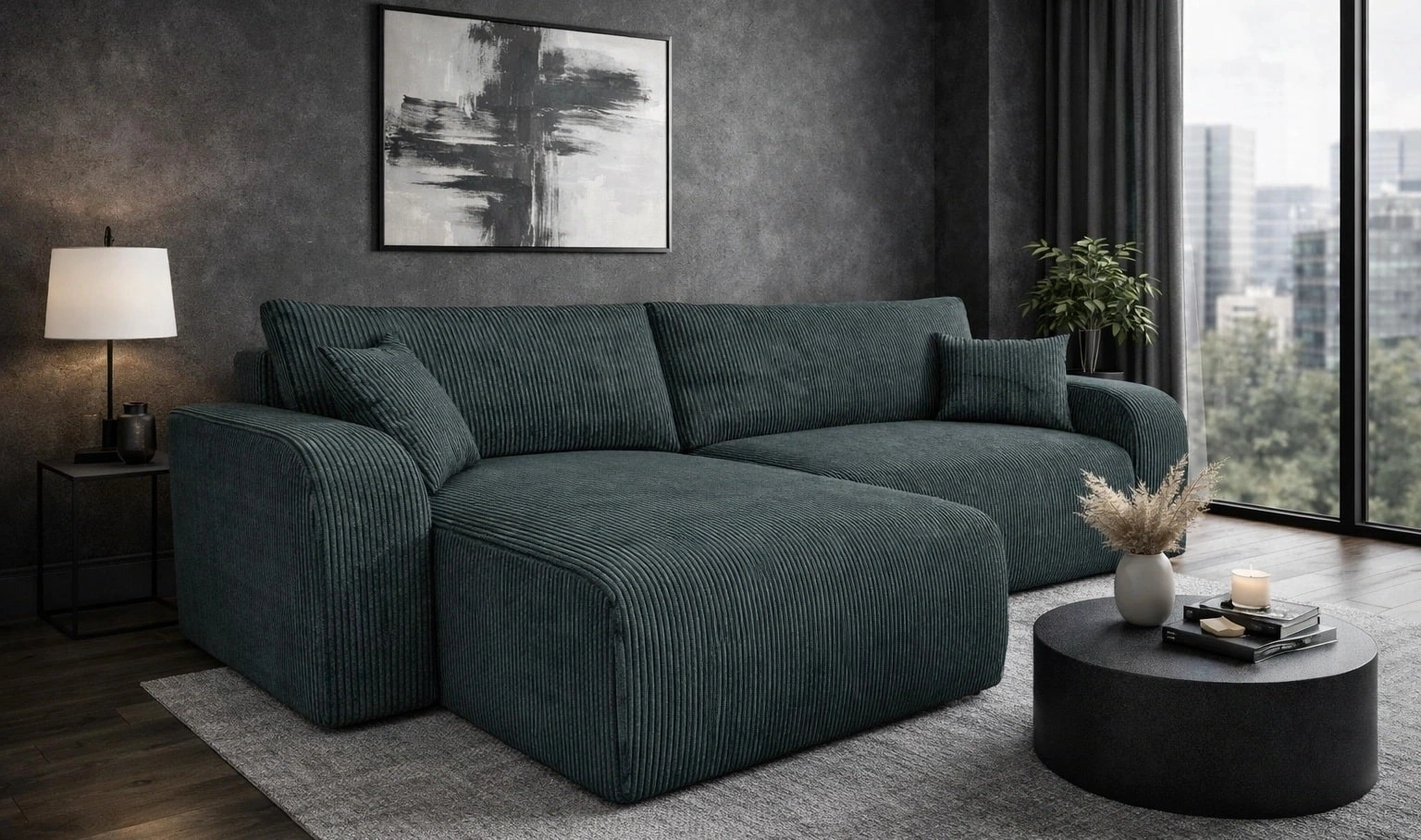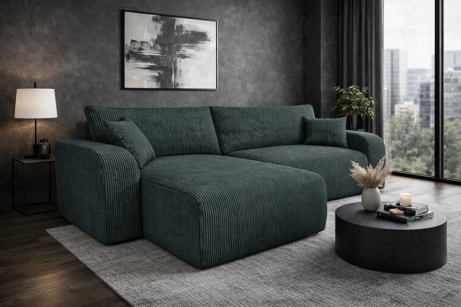 Dreidimensional kordstoff mit seiner ausgeprägten und dicken Rippung verleiht ihm einen besonderen Charakter und einzigartige Schönheit. Der Stoff ist sehr weich und dennoch stark und robust. Der Poso-Polsterungsstoff ist widerstandsfähig gegen Abrieb, und leicht sauber zu halten. So wird die Fiesta XL-Liegeecke lange Zeit ästhetisch und elegant aussehen. Das Ecksofa mit täglicher Schlaffunktion ist aus hochwertigen Materialien gefertigt, die gegen äußere Einflüsse wie Möbelbezüge und verschiedene Arten von Stößen resistent sind.