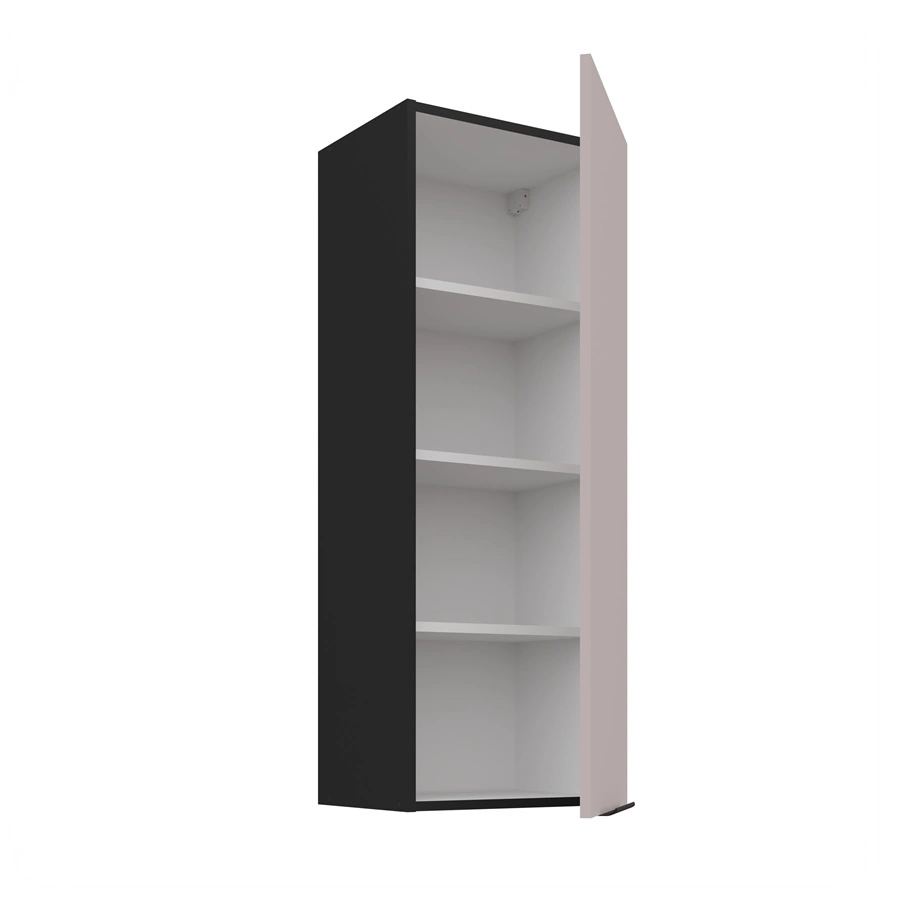 Küchenkorpus schwarz ist aus hochwertigem laminiertem Möbelplatte 16 mm dick. Der Vorteil dieser Art von Platten ist hohe Widerstandsfähigkeit gegen äußere Einflüsse wie Dampf, Hitze, verschüttete Flüssigkeiten. ABS-Furnierkanten erhöhen die Haltbarkeit des Küchenschranks.