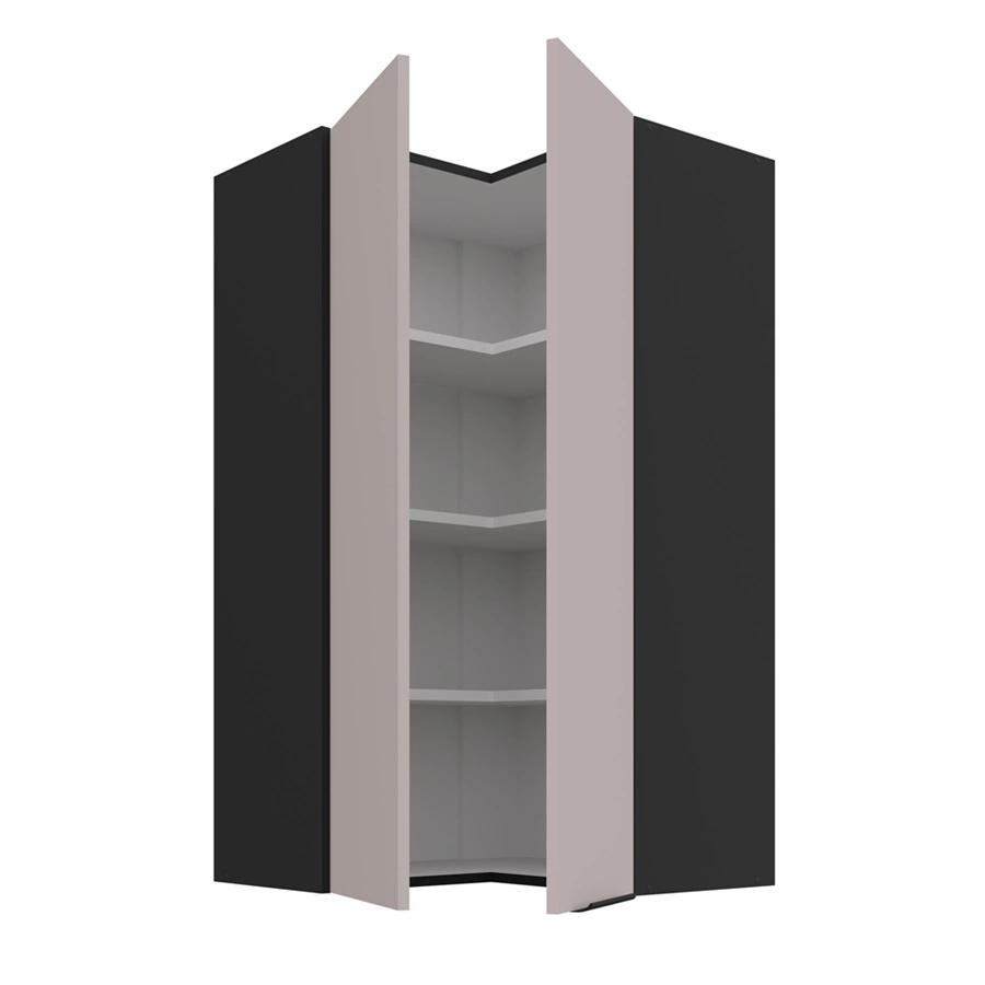Der Tarraco Eck-Hängeschrank in beige/schwarz gehört zur Kategorie der modularen Küchenmöbel, aus denen sich beliebige Sets zusammenstellen lassen.