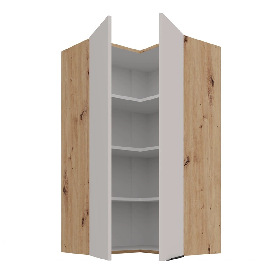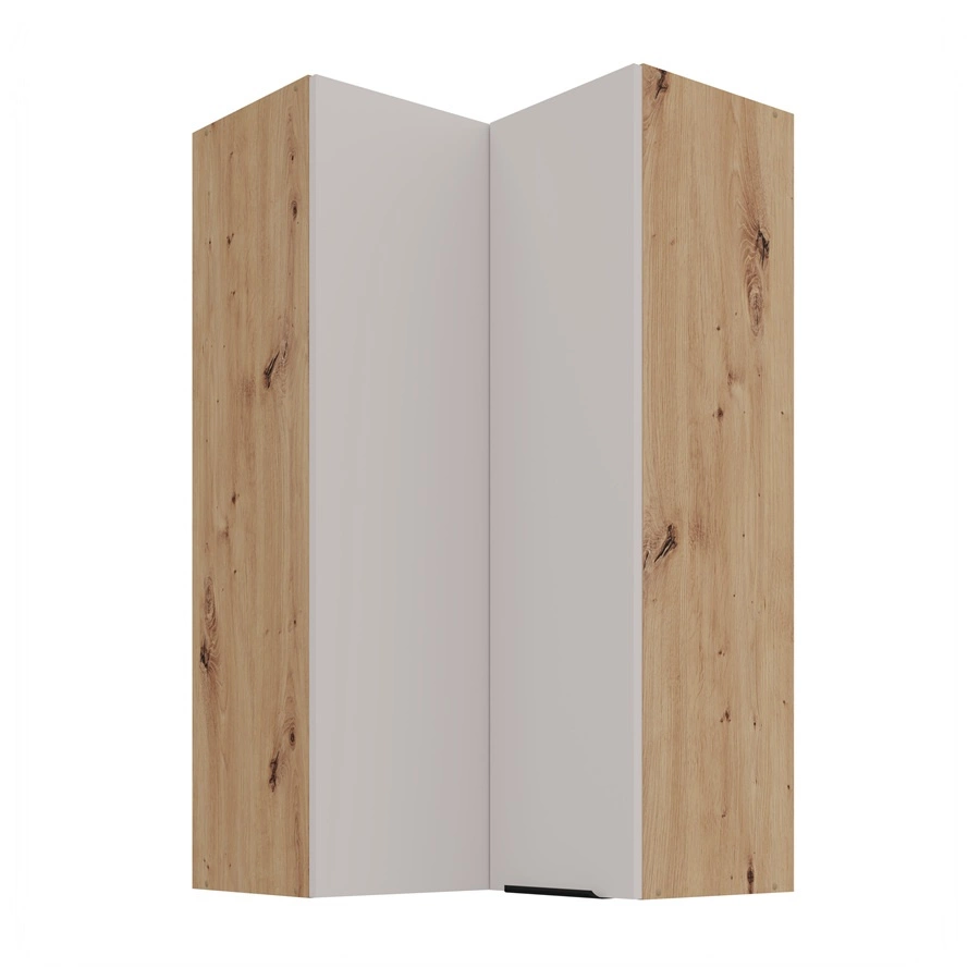 Der wandhängende Eck-Küchenschrank Soela in Eiche artisan / beige gehört zur Kategorie der modularen Küchenmöbel, aus denen sich jedes gewünschte Set zusammenstellen lässt.