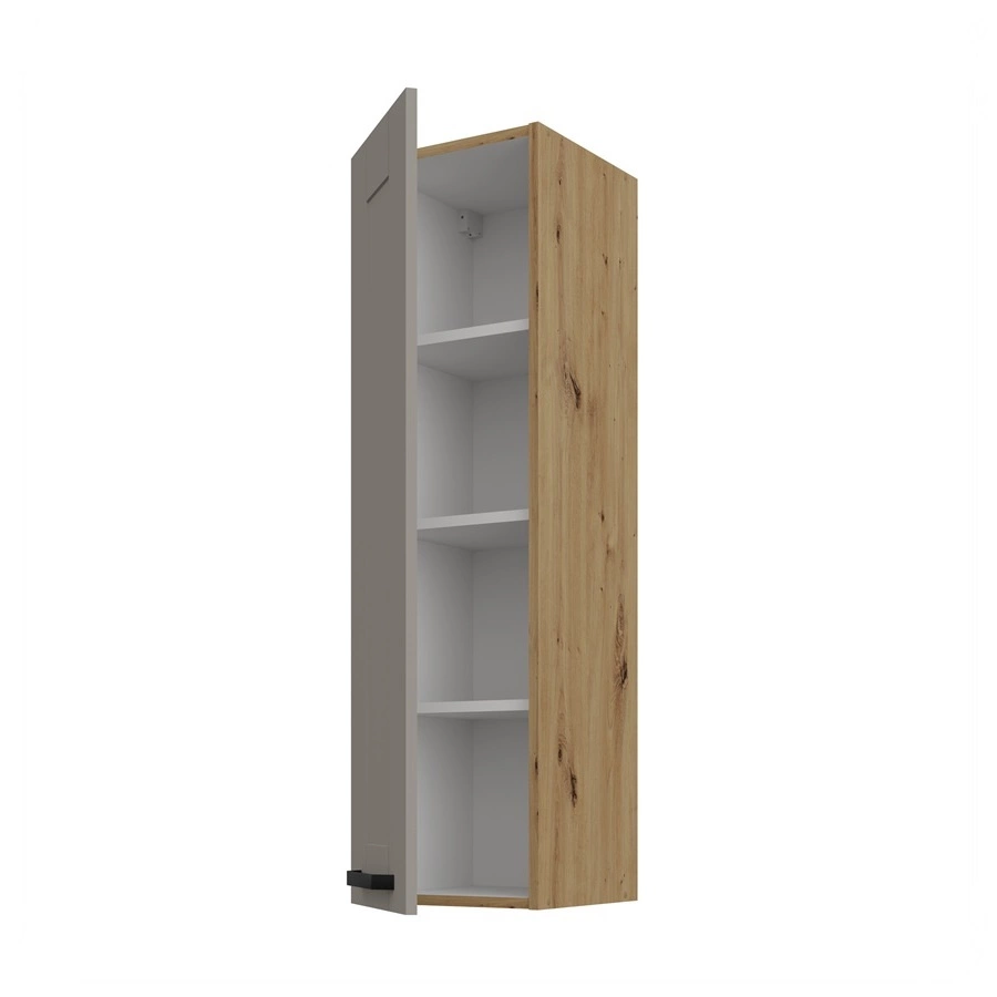 Der wandhängende Küchenschrank Linosa in grau-beige / Eiche artisan gehört zur Kategorie der modularen Küchenmöbel, aus denen jedes gewünschte Set zusammengestellt werden kann.
