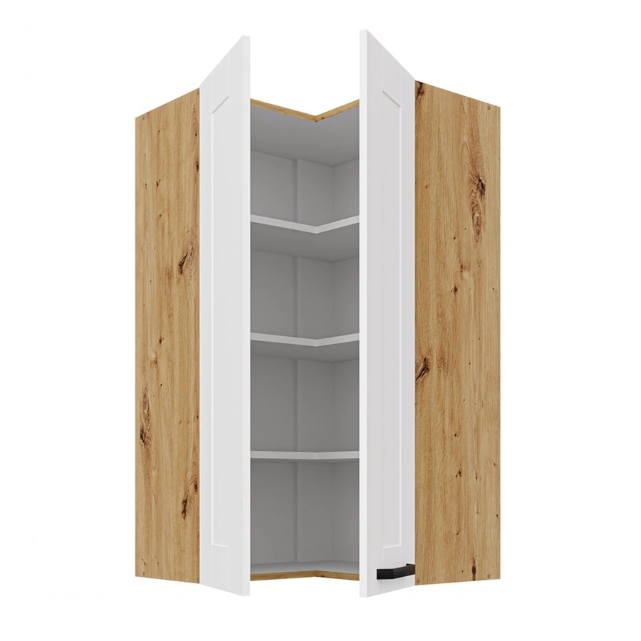 Der Eck-Küchenhängeschrank Luis in Weiß/Eiche artisan gehört zur Kategorie der modularen Küchenmöbel, mit denen sich jede beliebige Kombination von.