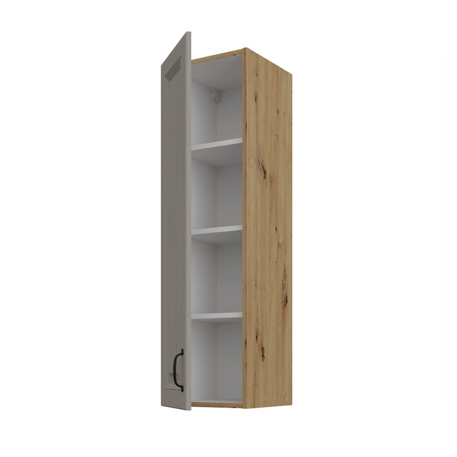 Der wandhängende Küchenschrank Delos in Graubeige / Eiche artisan gehört zur Kategorie der modularen Küchenmöbel, aus denen sich jedes gewünschte Set zusammenstellen lässt.