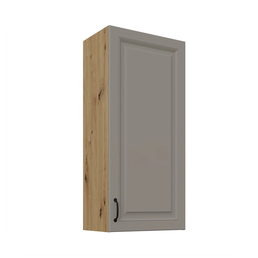 Der wandhängende Küchenschrank Delos in Graubeige / Eiche artisan gehört zur Kategorie der modularen Küchenmöbel, aus denen sich jedes gewünschte Set zusammenstellen lässt.
