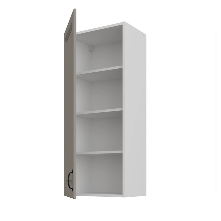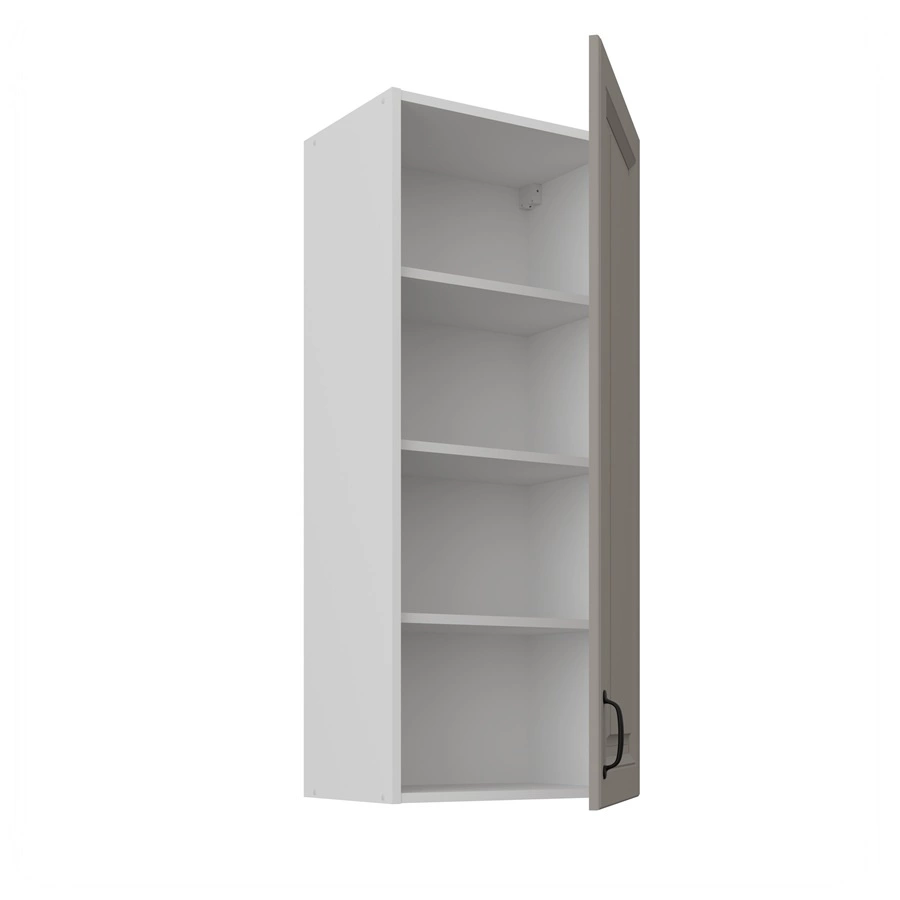 Drei ausziehbare Böden schaffen Platz für hohe Gegenstände. Die Tür ist universell einsetzbar und kann an den rechts oder auf der links website. Zur Standardausstattung der Küchenschränke gehören scharniere mit Absenkautomatik. Die Retarder erhöhen komfort i sicherheit verwendung von Möbeln.