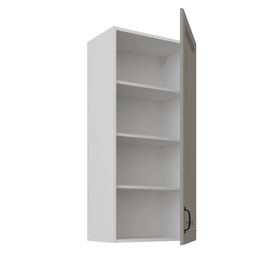 Drei Regalböden können herausgezogen werden, um Platz für hohe Gegenstände zu schaffen. Die Tür ist universell einsetzbar und kann an den rechts oder auf der links website. Zur Standardausstattung der Küchenschränke gehören scharniere mit Absenkautomatik. Die Retarder erhöhen komfort i sicherheit verwendung von Möbeln.