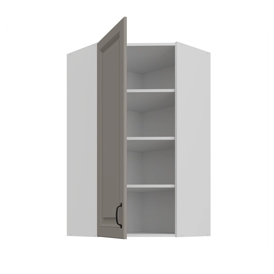 Der Kastos Eckhängeschrank in grau-beige/weiß gehört zur Kategorie der modularen Küchenmöbel, aus denen sich beliebige Sets zusammenstellen lassen.
