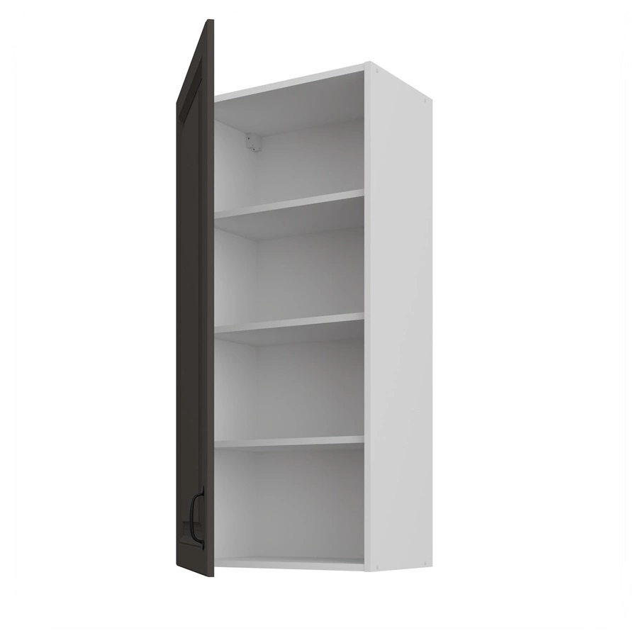 Drei Regalböden können herausgezogen werden, um Platz für hohe Gegenstände zu schaffen. Die Tür ist universell einsetzbar und kann an den rechts oder auf der links website. Zur Standardausstattung der Küchenschränke gehören scharniere mit Absenkautomatik. Die Retarder erhöhen komfort i sicherheit verwendung von Möbeln.