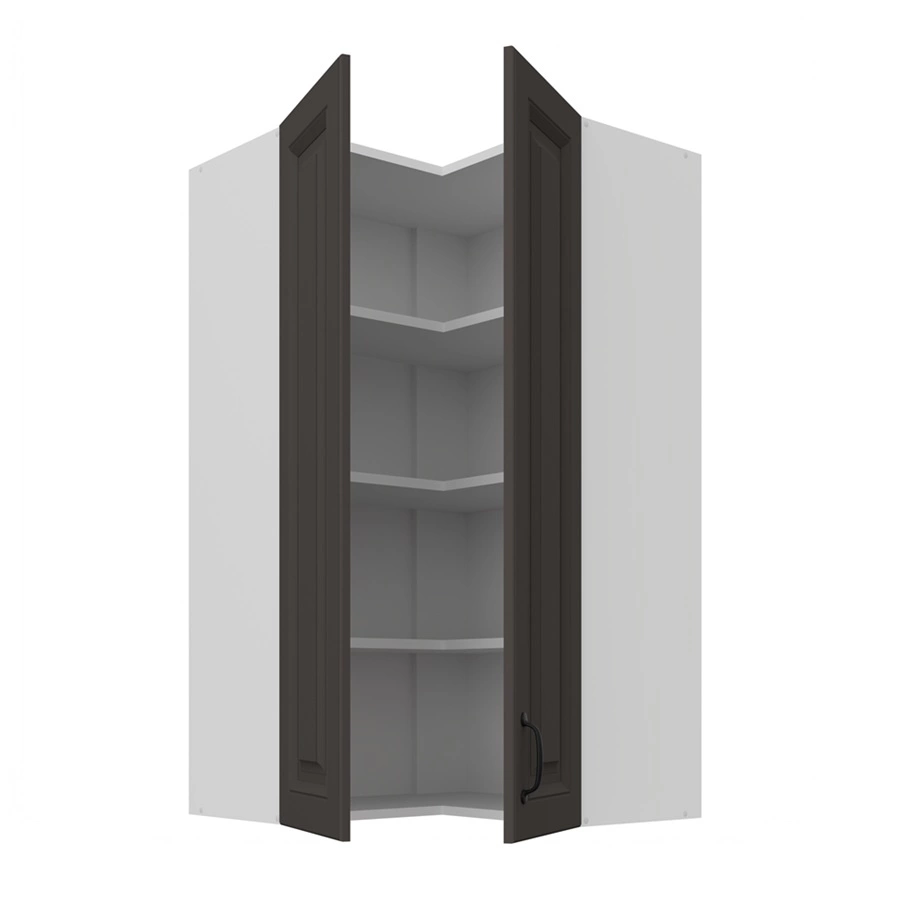 Der Eckhängeschrank Silver in Weiß/Graphit gehört zur Kategorie der modularen Küchenmöbel, aus denen sich jedes beliebige Set zusammenstellen lässt.
