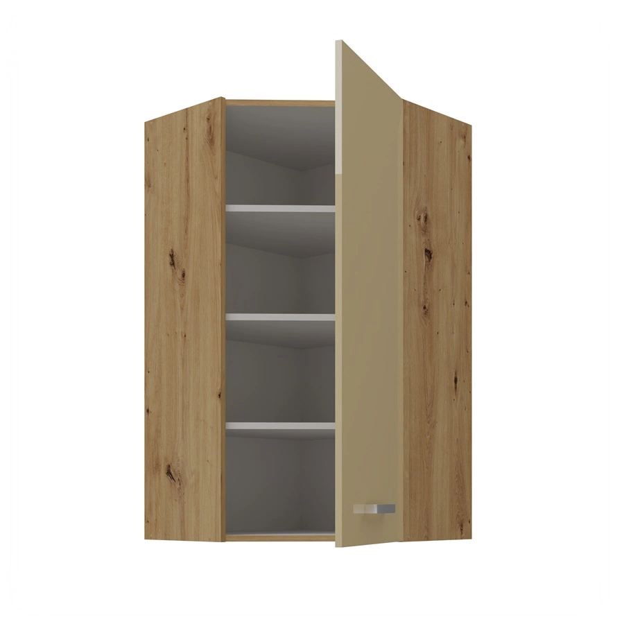Der Arton Eckhängeschrank in Beige / Eiche artisan gehört zur Kategorie der modularen Küchenmöbel, aus denen sich beliebige Sets zusammenstellen lassen.