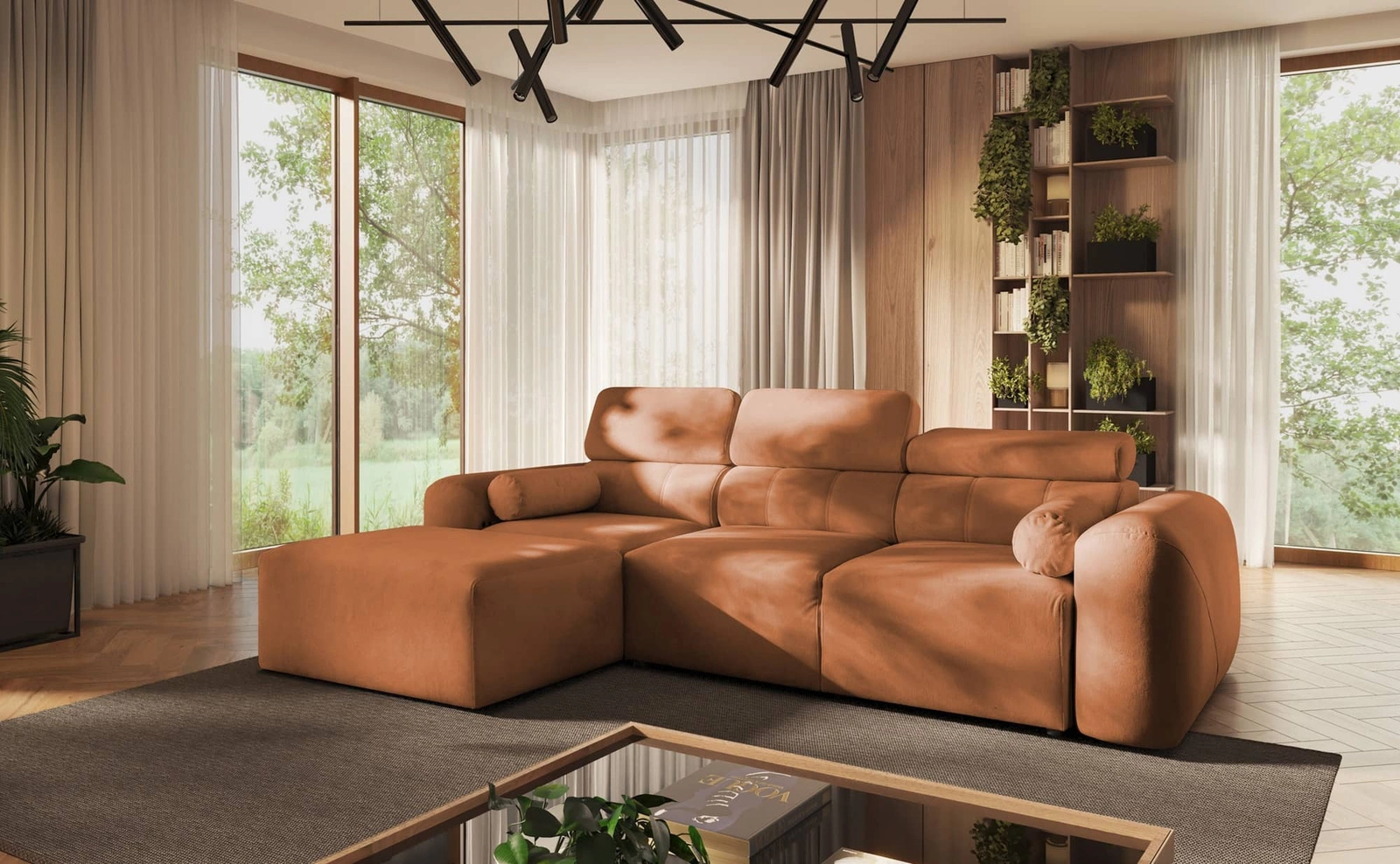 Ecksofa mit Schlaffunktion Cantare ziegelrot linke Ecke funktionelles und bequemes Ecksofa mit modernem Design Plüschstoff