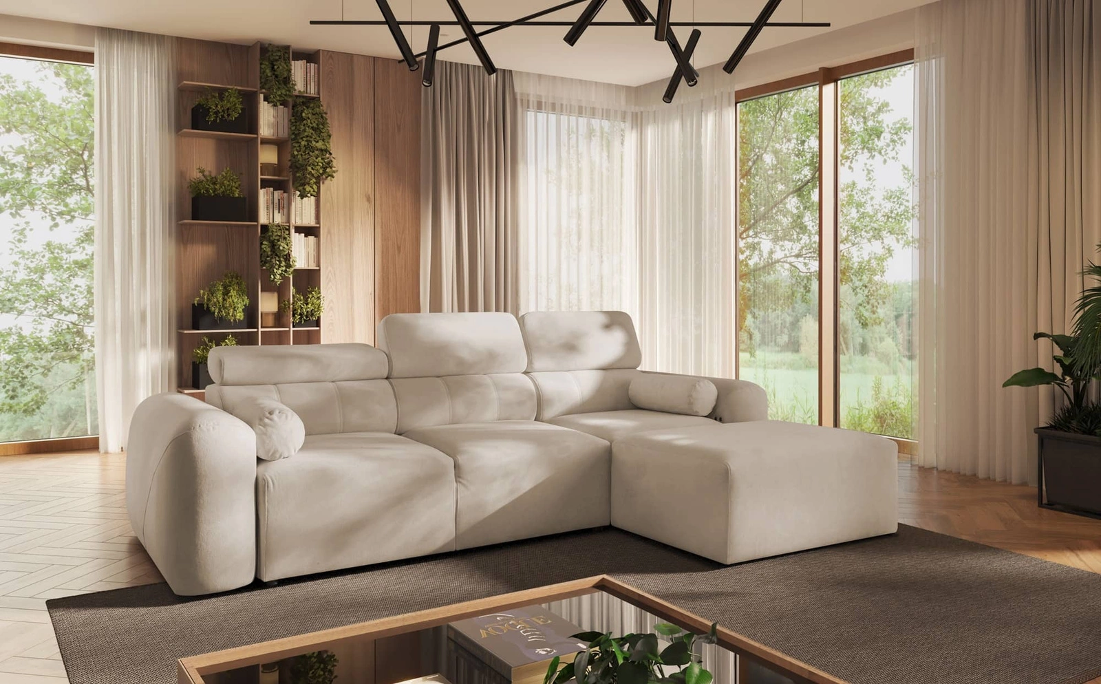Ecksofa mit Schlaffunktion Cantare beige rechte Seite funktionelles und bequemes Ecksofa mit modernem Design Plüschstoff