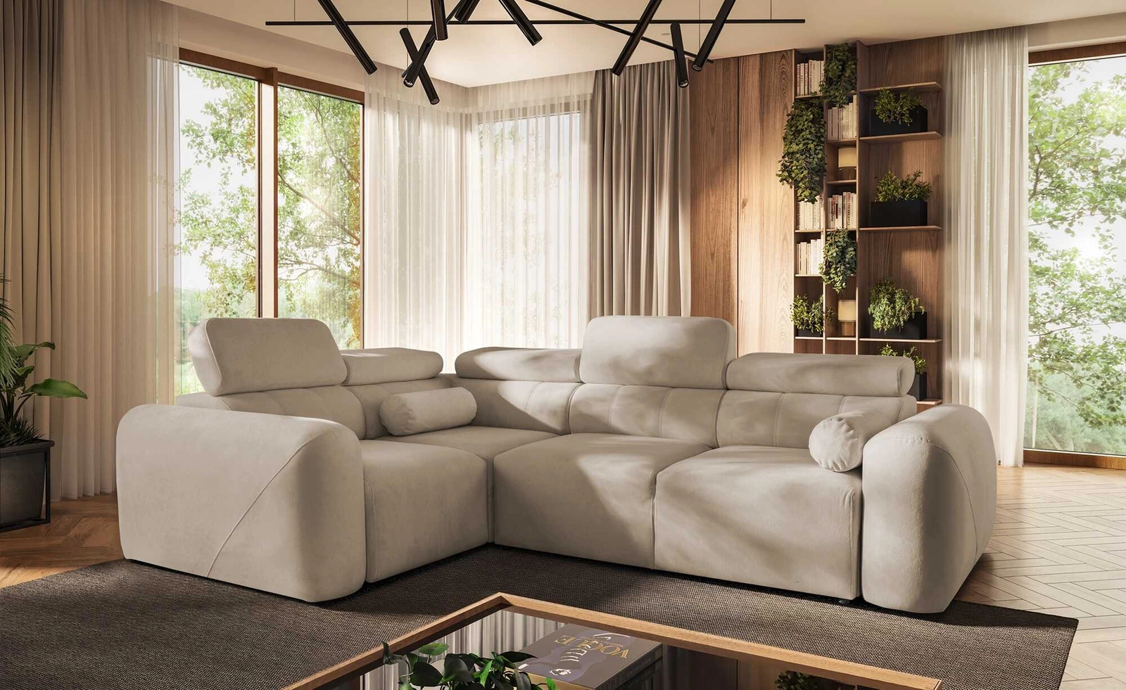 - Das Ecksofa Cantare II zeichnet sich durch ein modernes und stilvolles Design aus. Die Oberfläche der Ecke ist mit einem weichen, plüschigen, strukturierten Stoff überzogen, der dem Interieur einen subtilen Touch verleiht. Das einfach zu bedienende Entfal